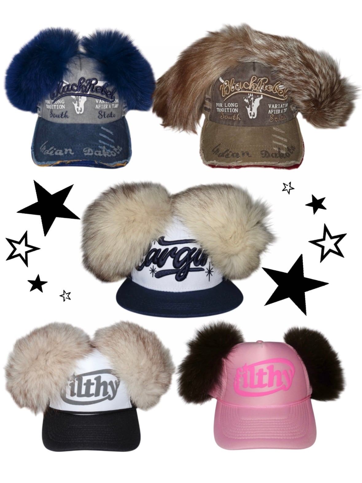 リメイクファーキャップ ヴィンテージ リアルファーを使用 ファーは取り外し可能 カラー ブラック×ホワイト サイズ フリー