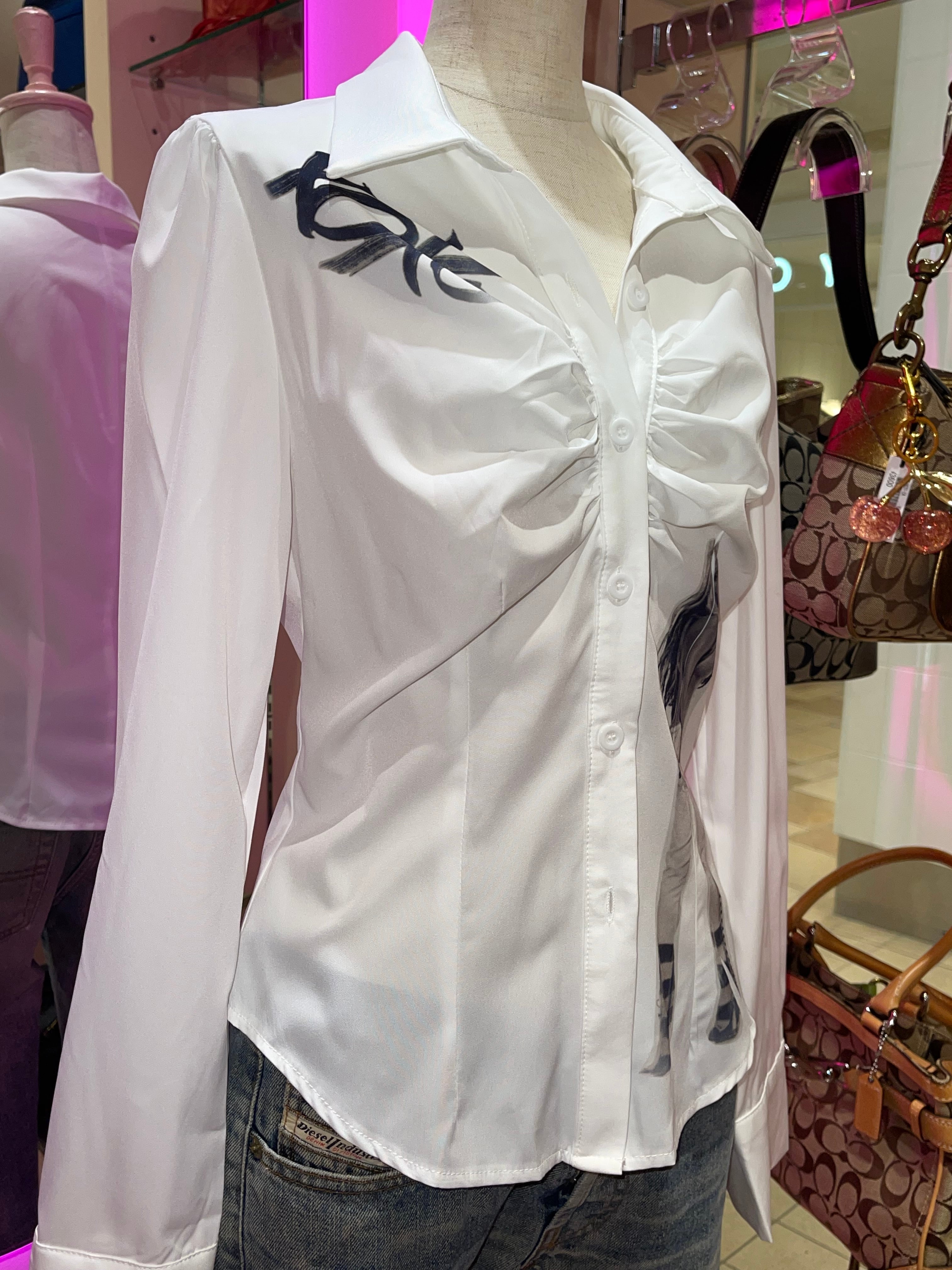 Y2K Printed Gather Shirt