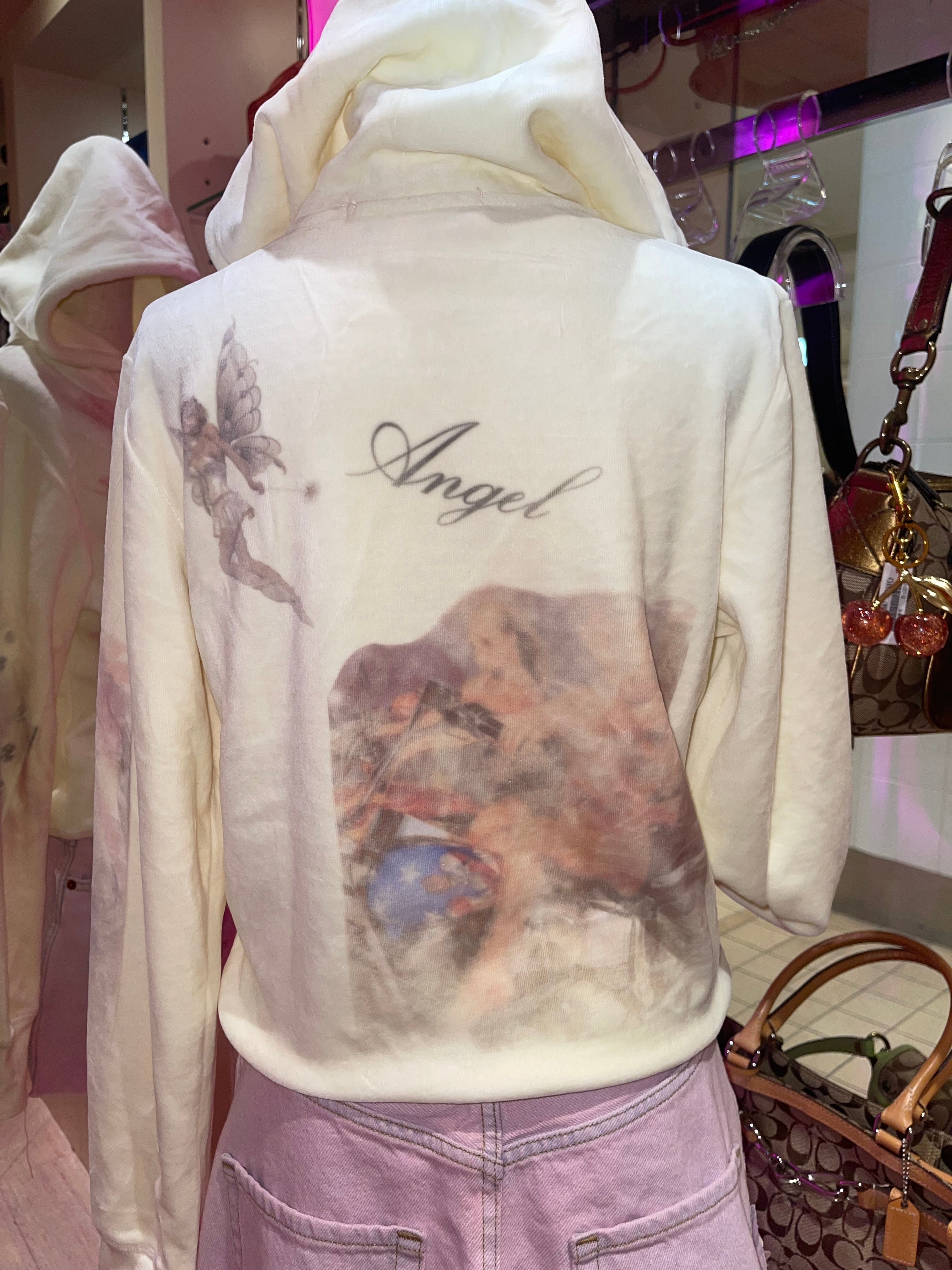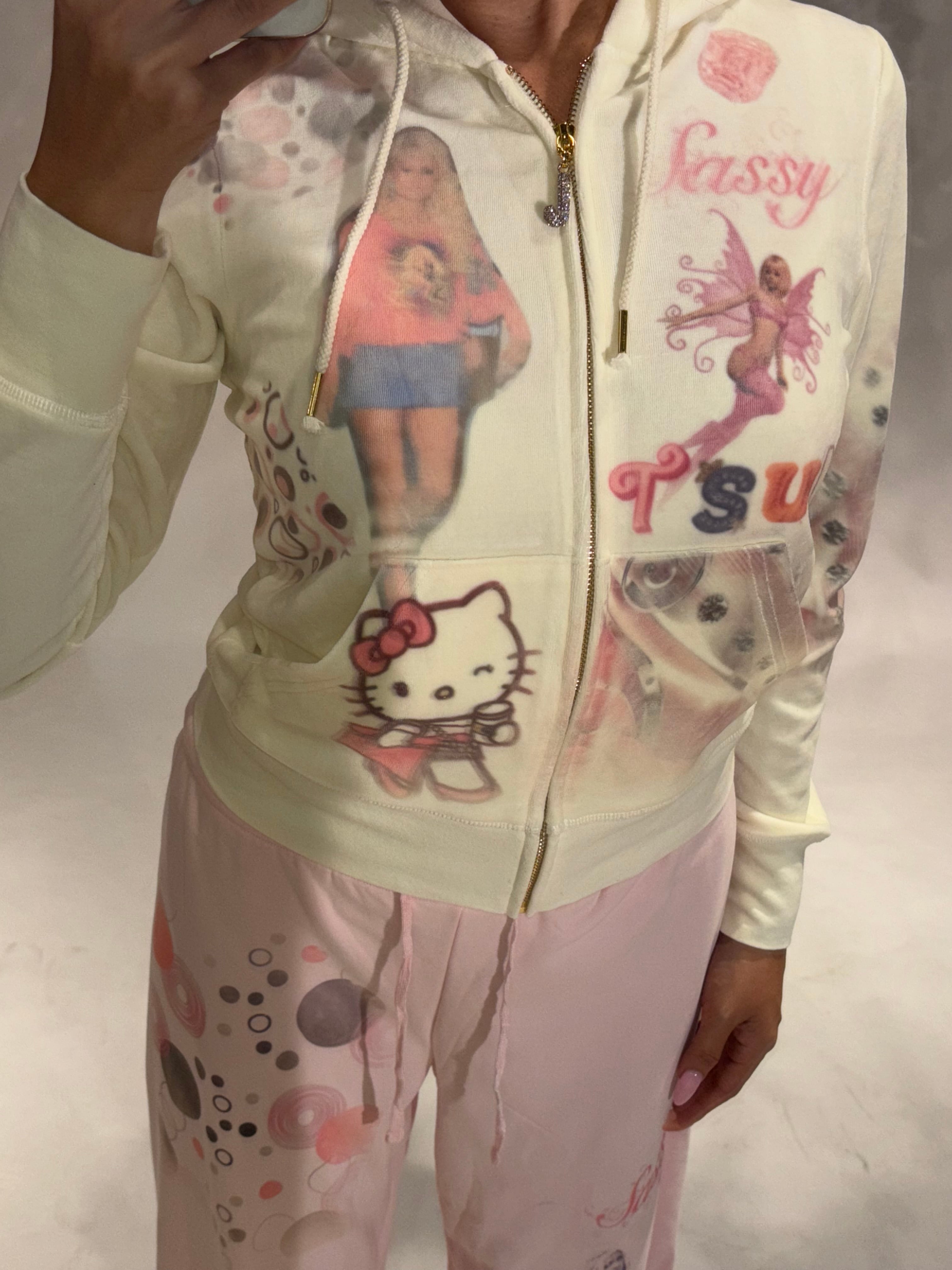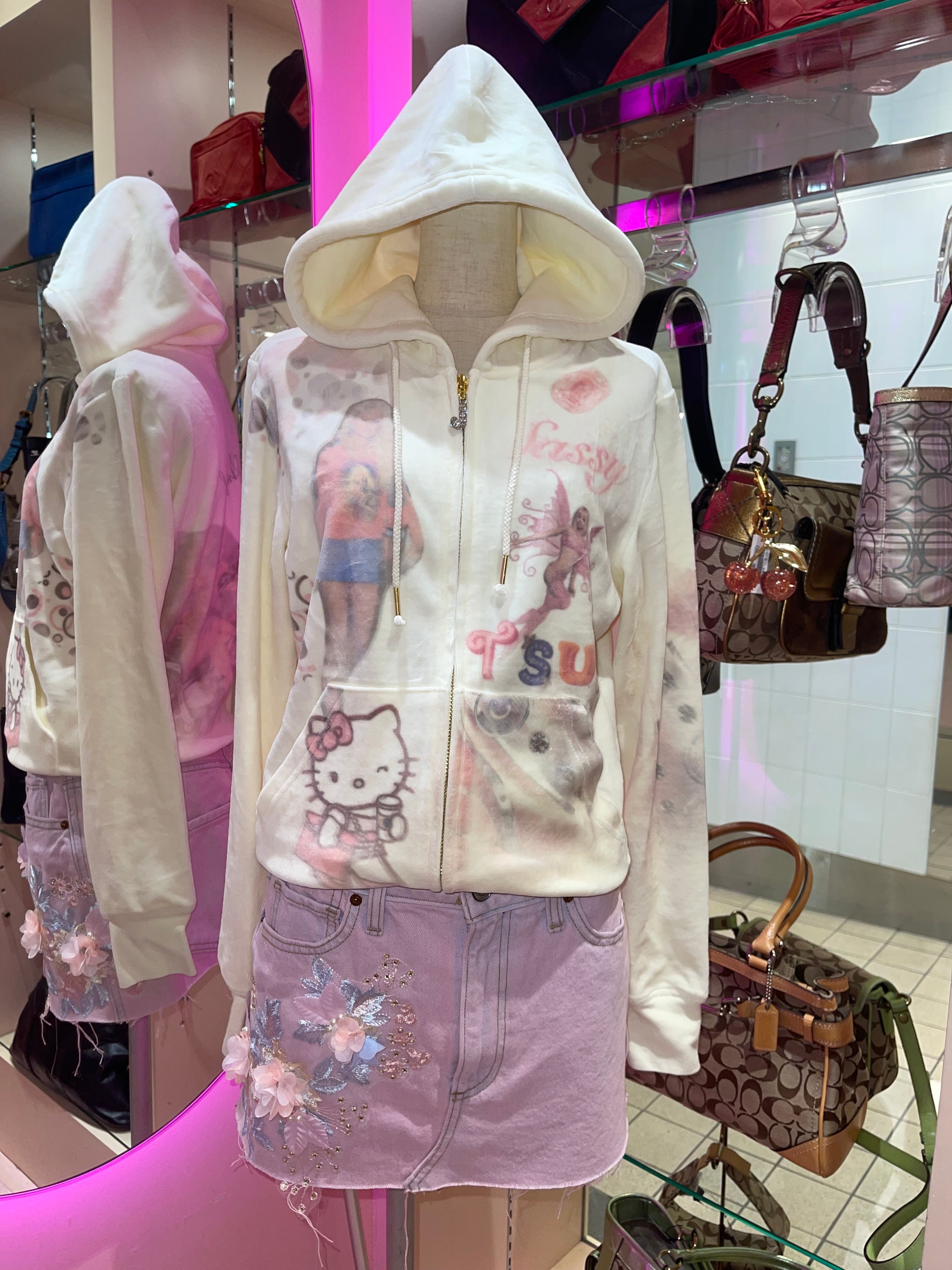 ジューシークチュールベロアフーディにキュートなプリントを施した2000sモードたっぷりな1点物