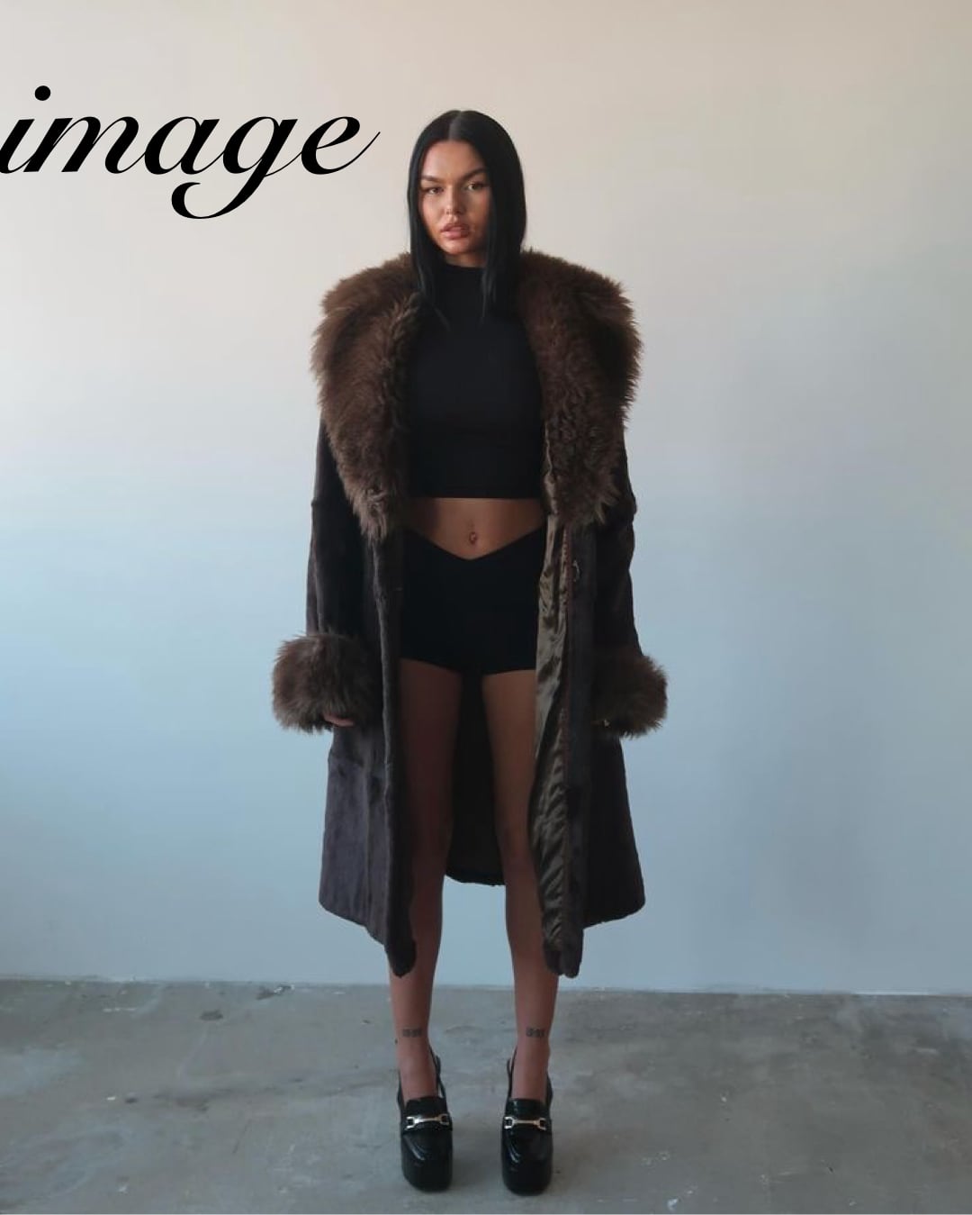 VINTAGE FOX FUR&LAME LEATHER COAT