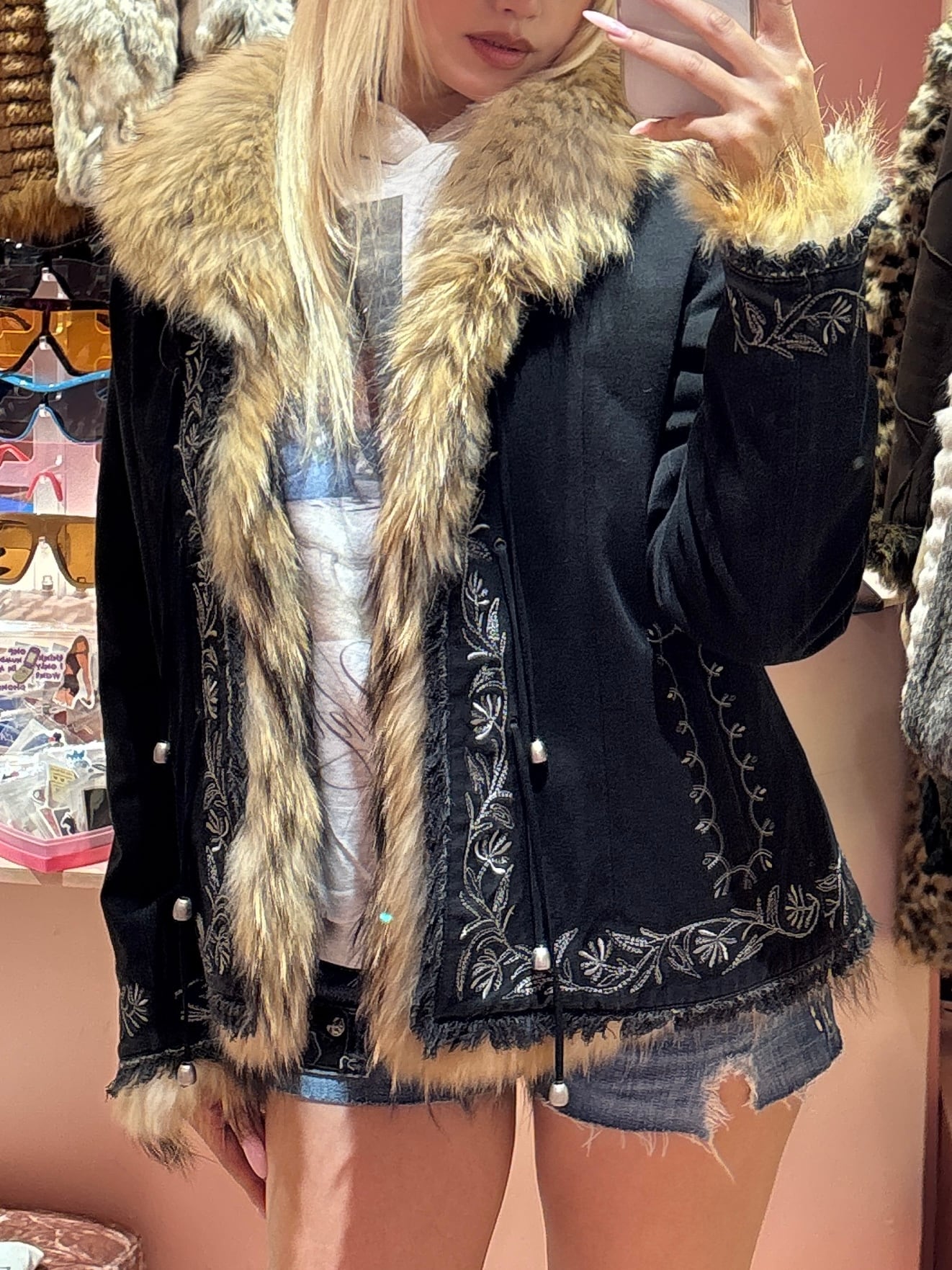VINTAGE BOHO FUR TRIMME JACKET