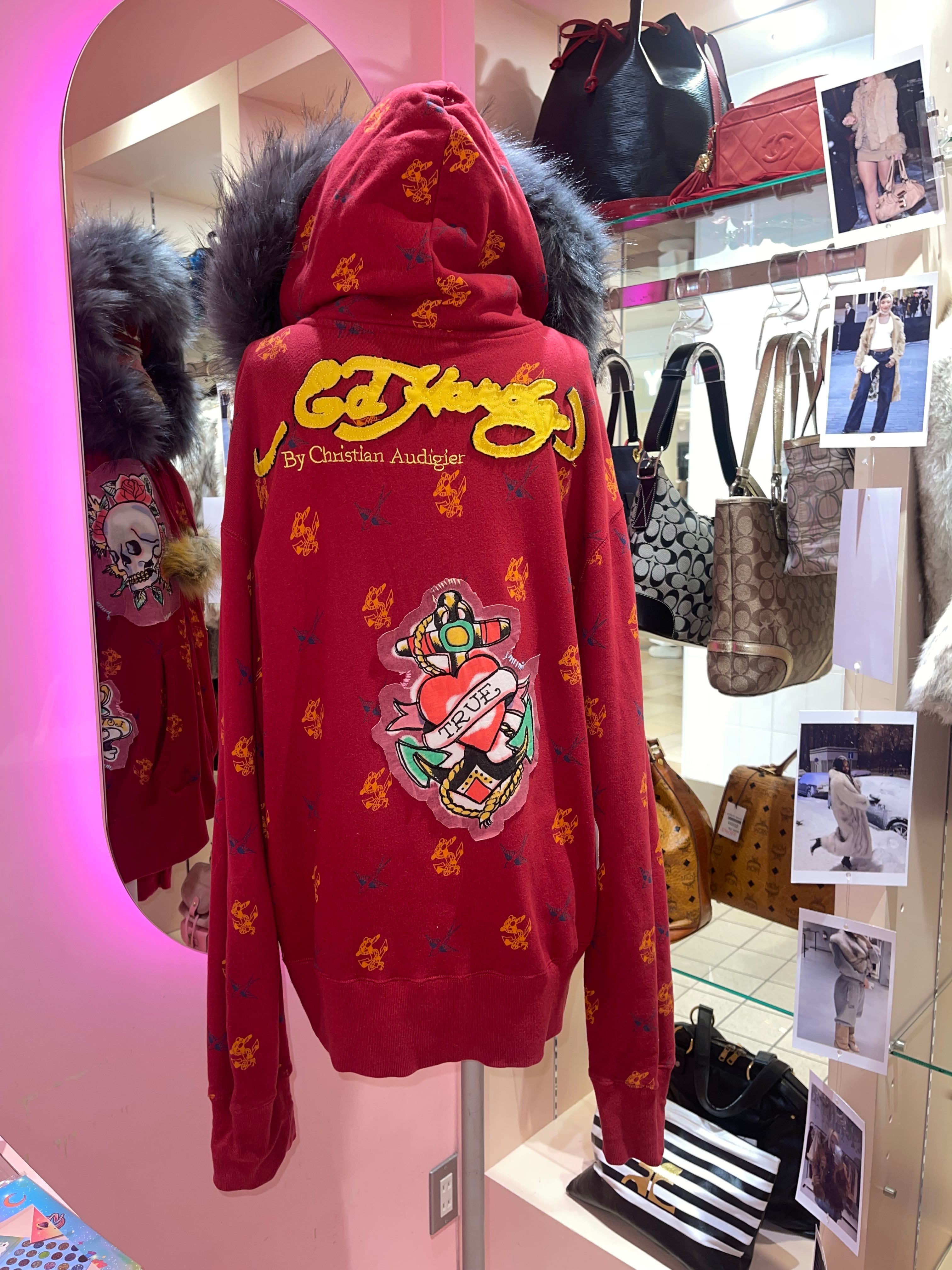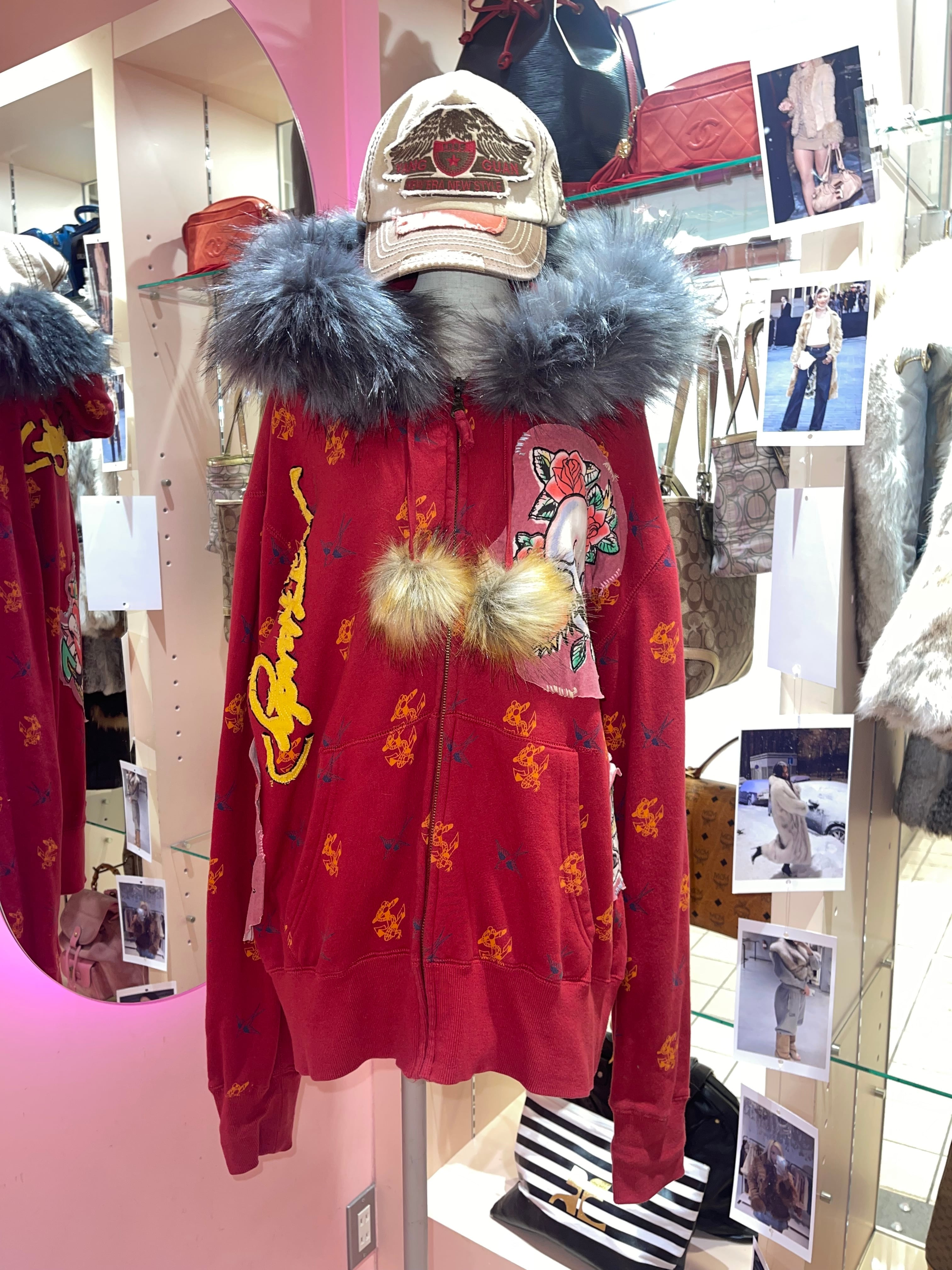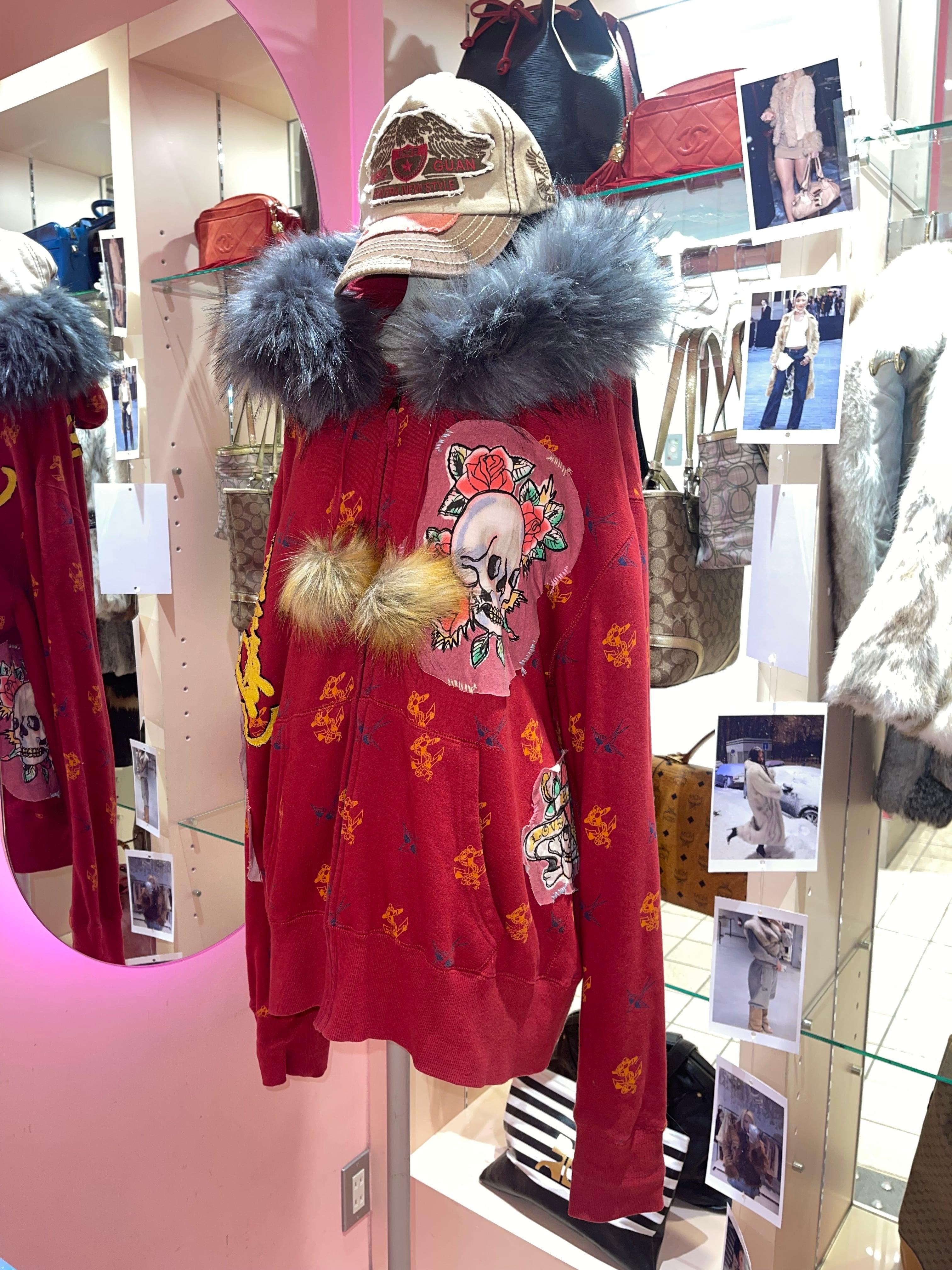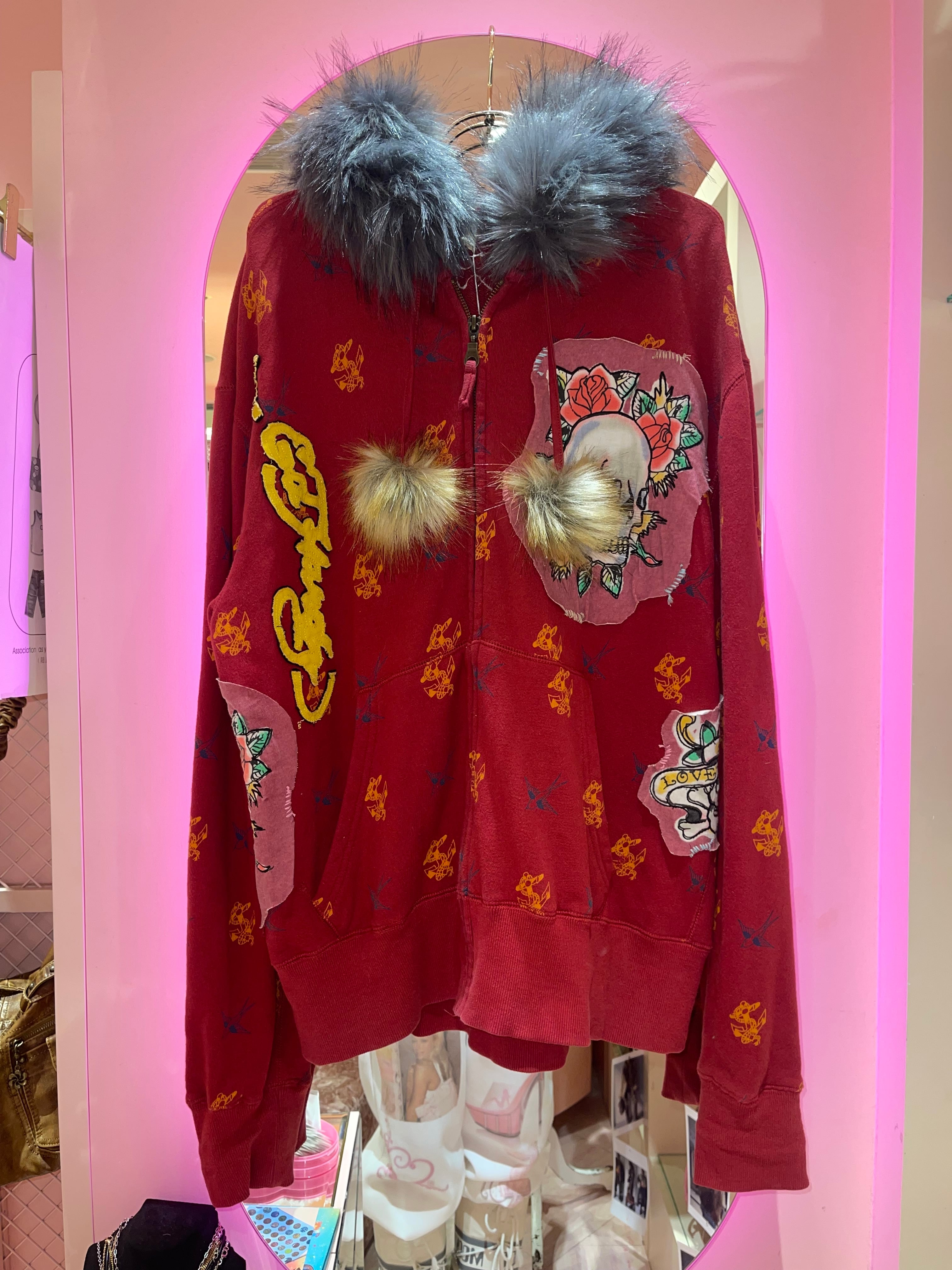 VINTAGE ED HARDY REMAKE FUR HOODIE Y2K