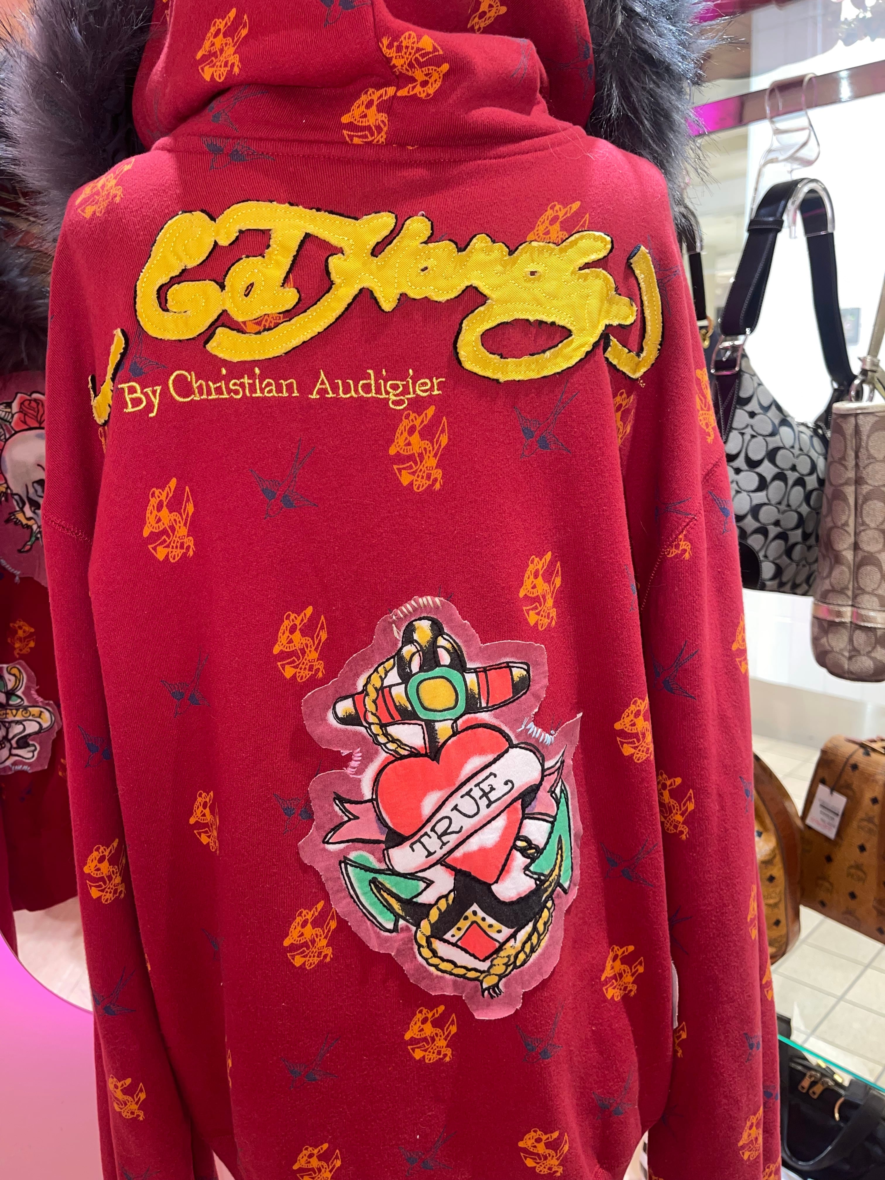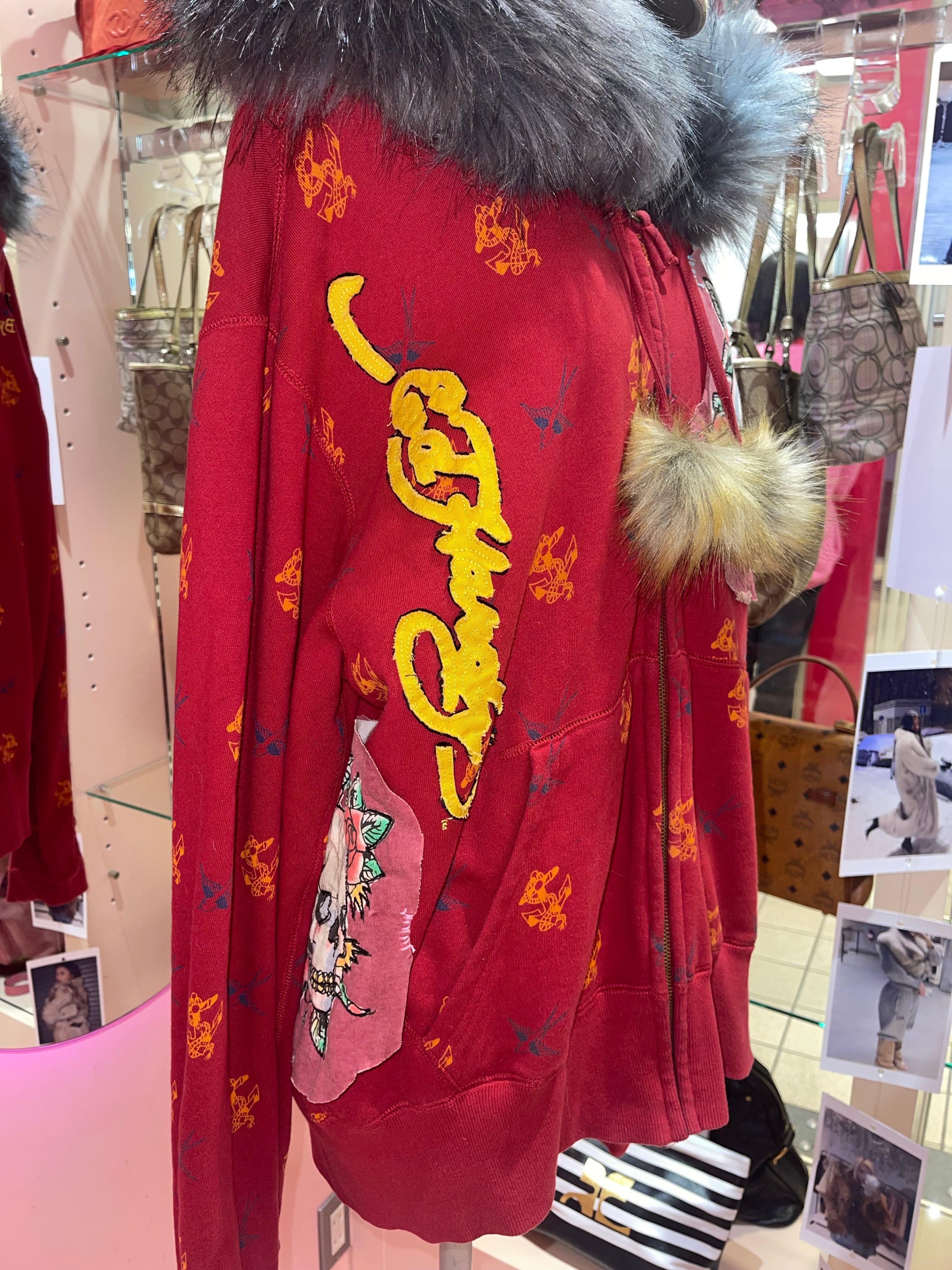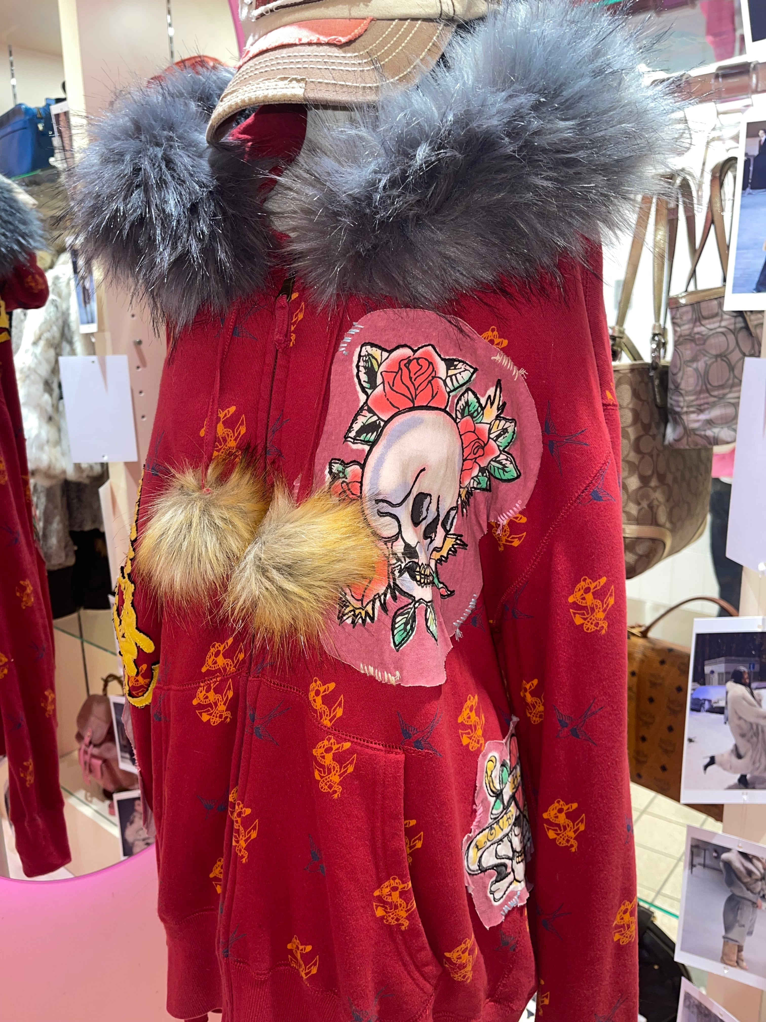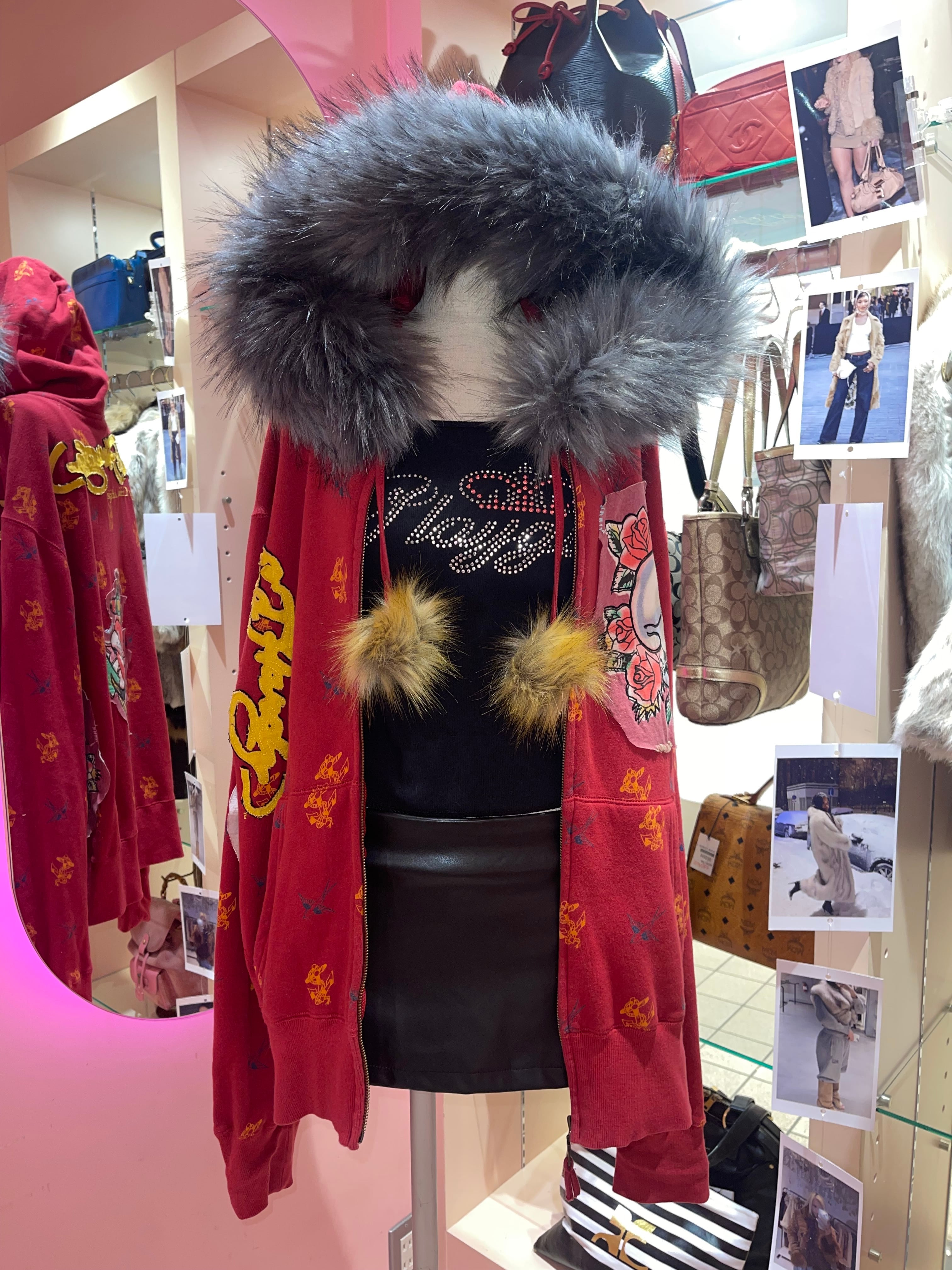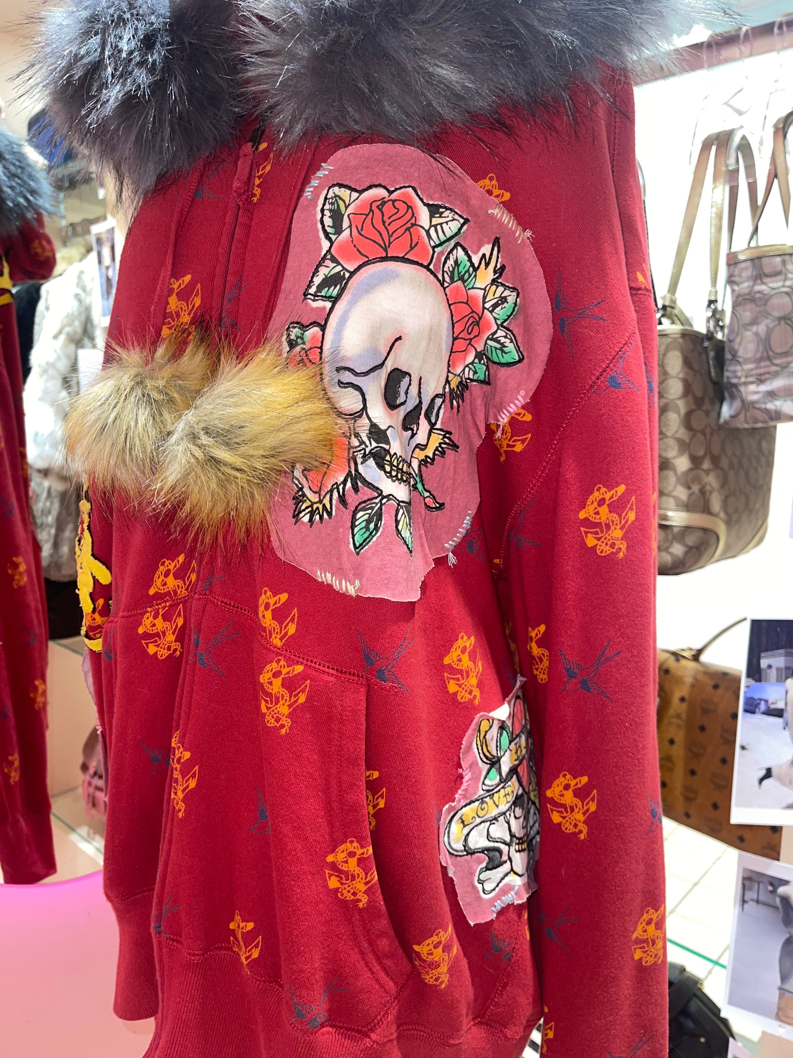 VINTAGE ED HARDY REMAKE FUR HOODIE Y2K