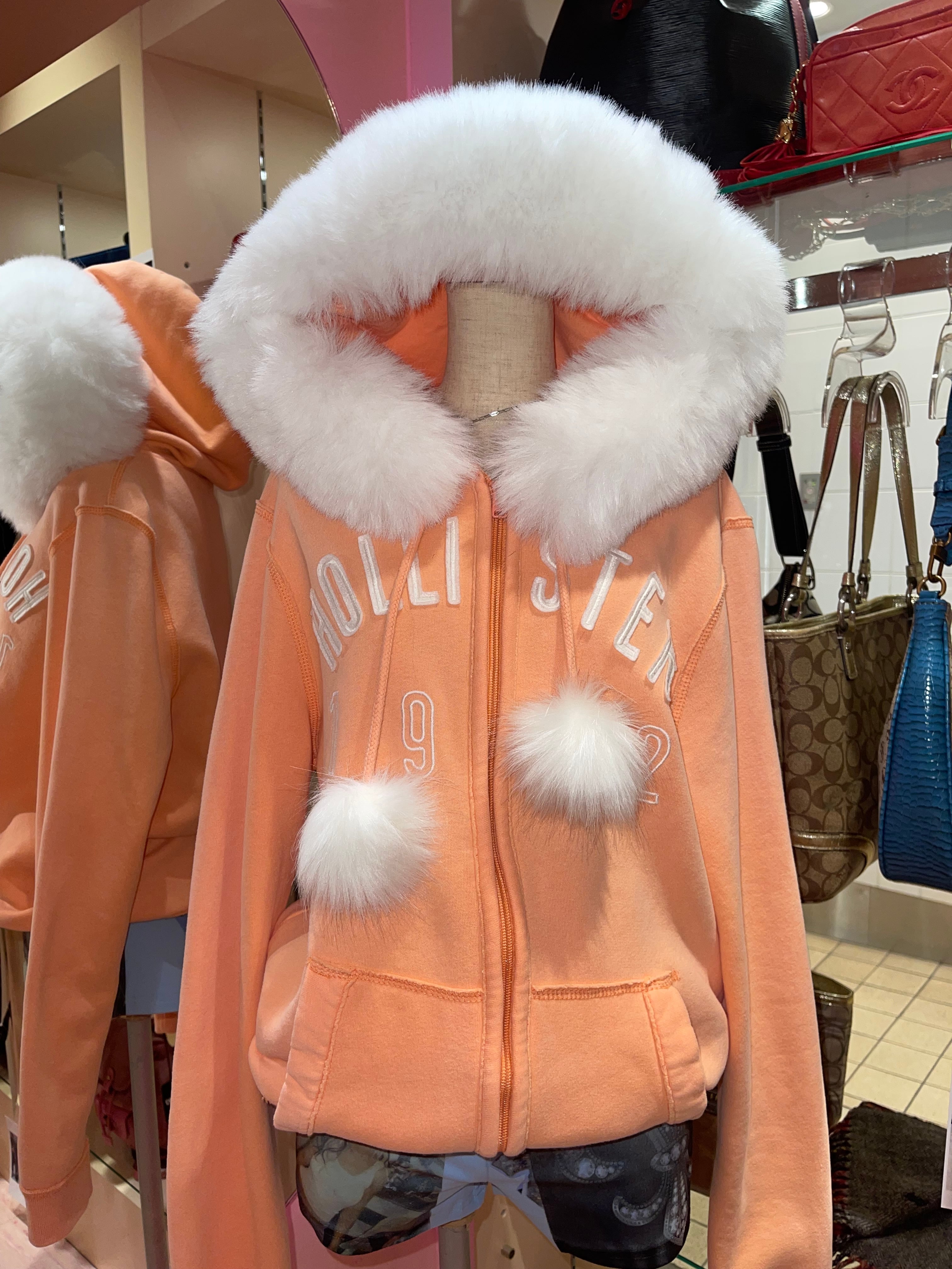 VINTAGE HOLLISTER PONPON FUR HOODIE Y2K
