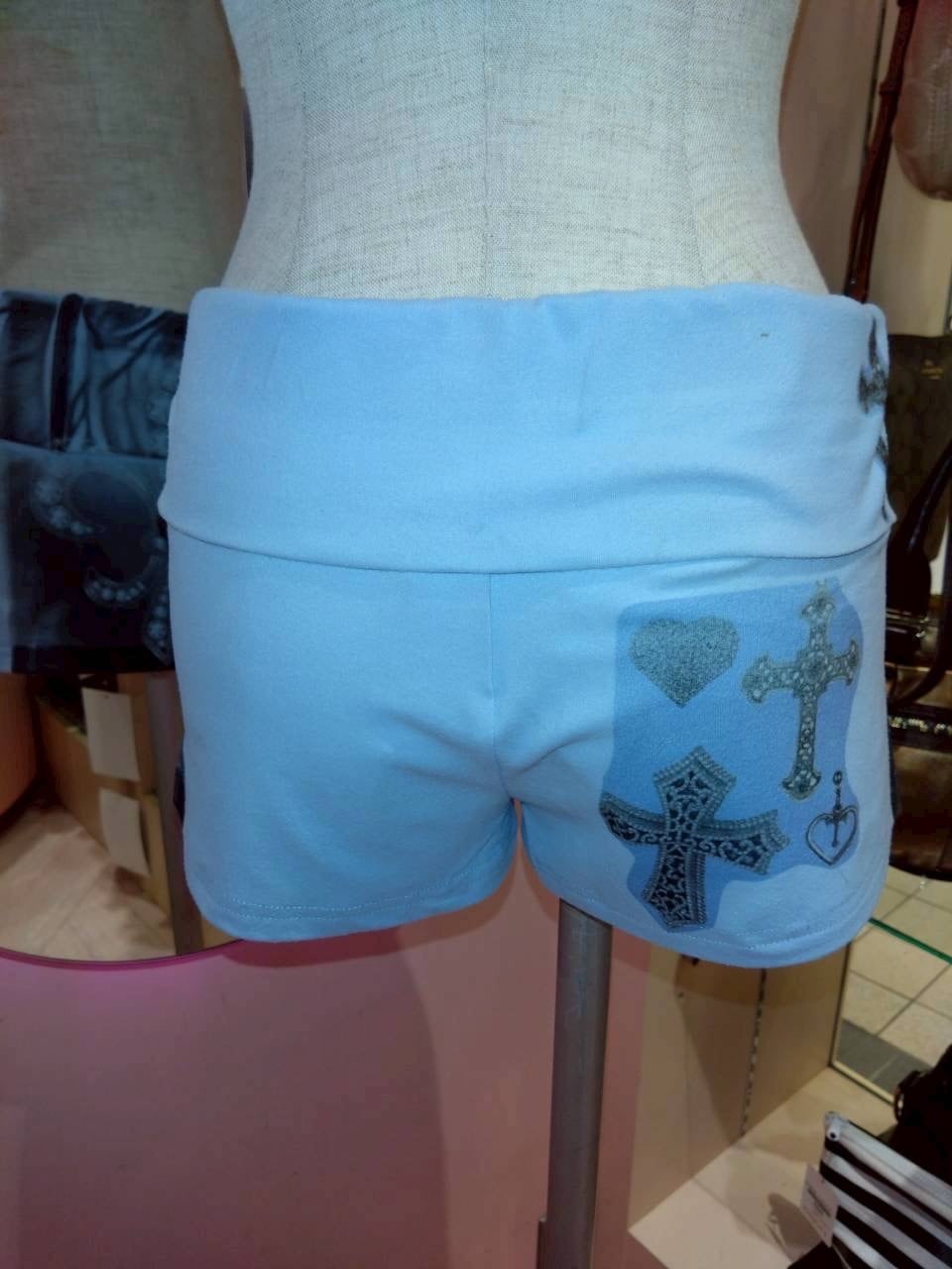 PRINTED SHORT PANTS BLUE Y2K