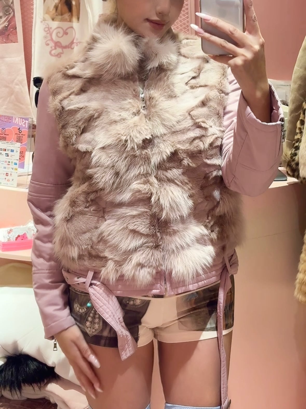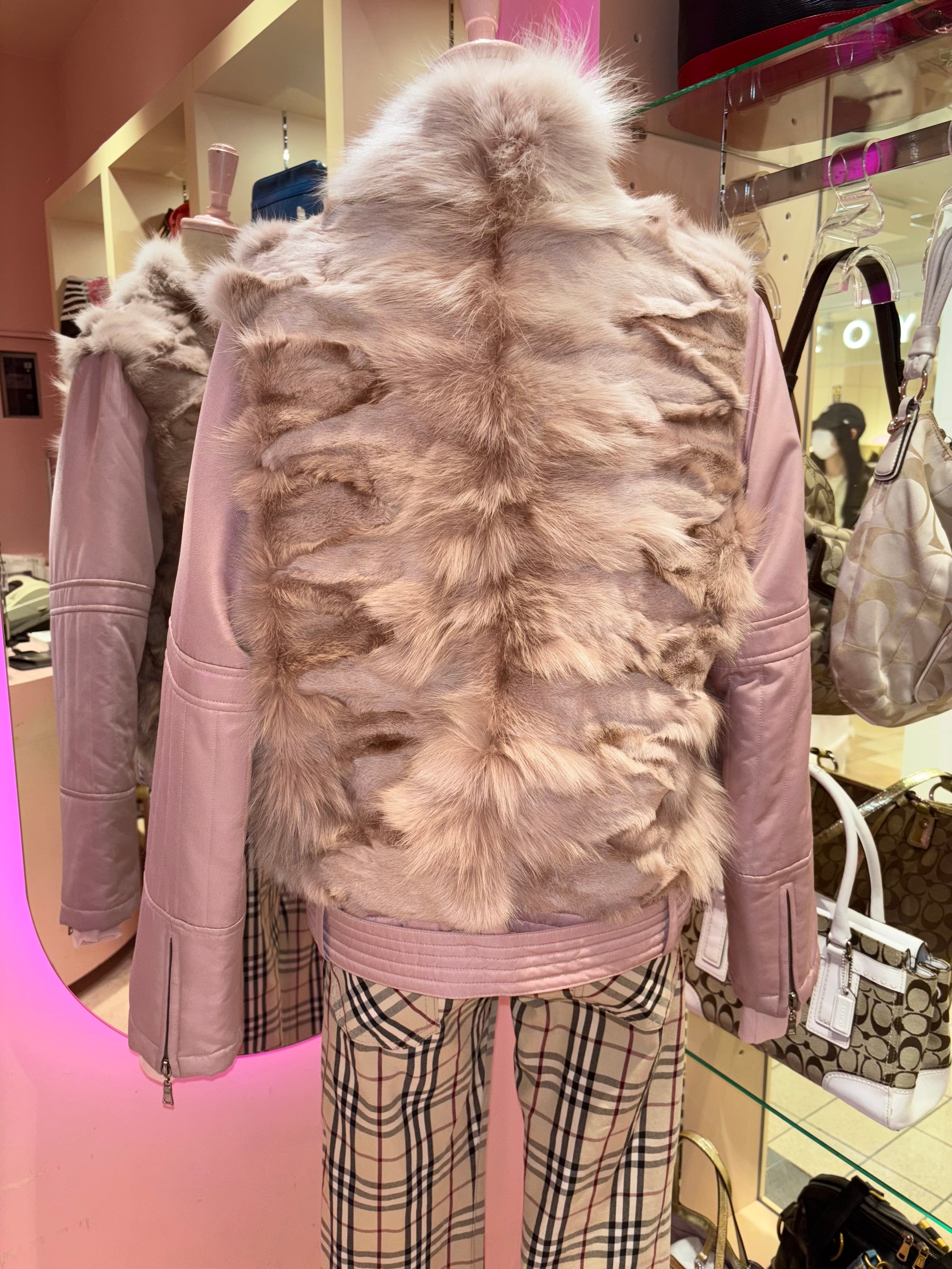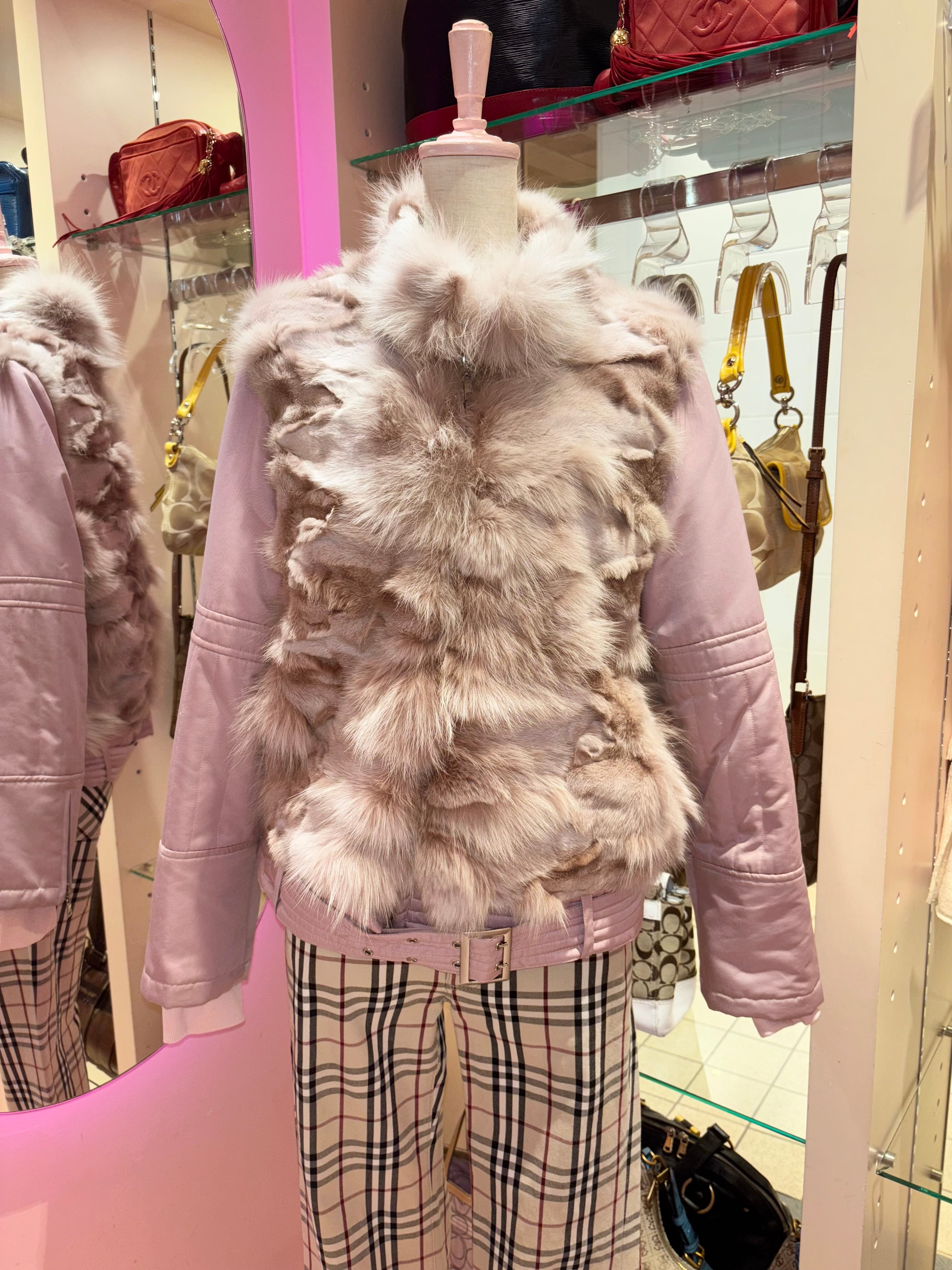 Vintage Fox Fur ×Puffer Pink Jacket Y2K