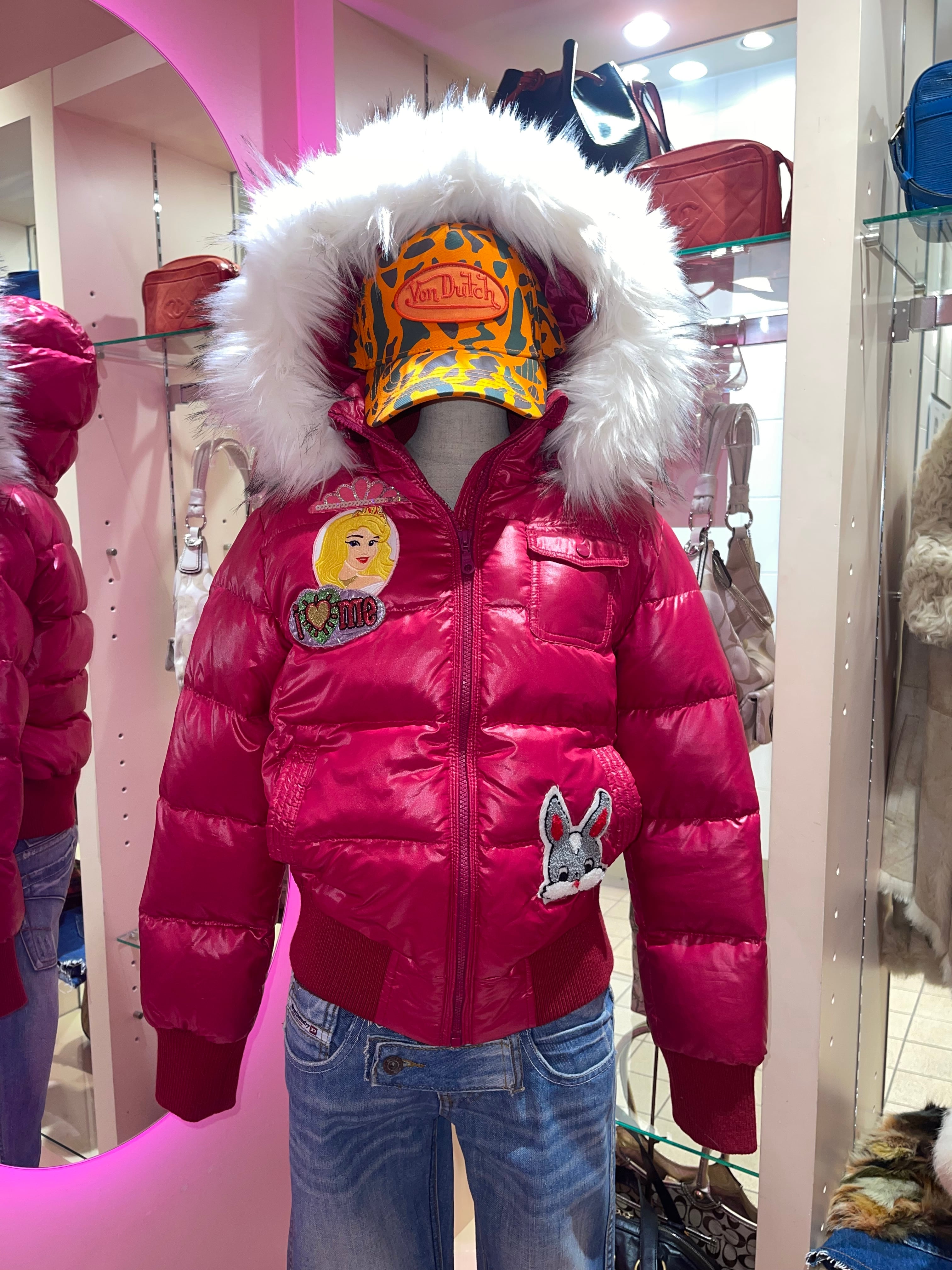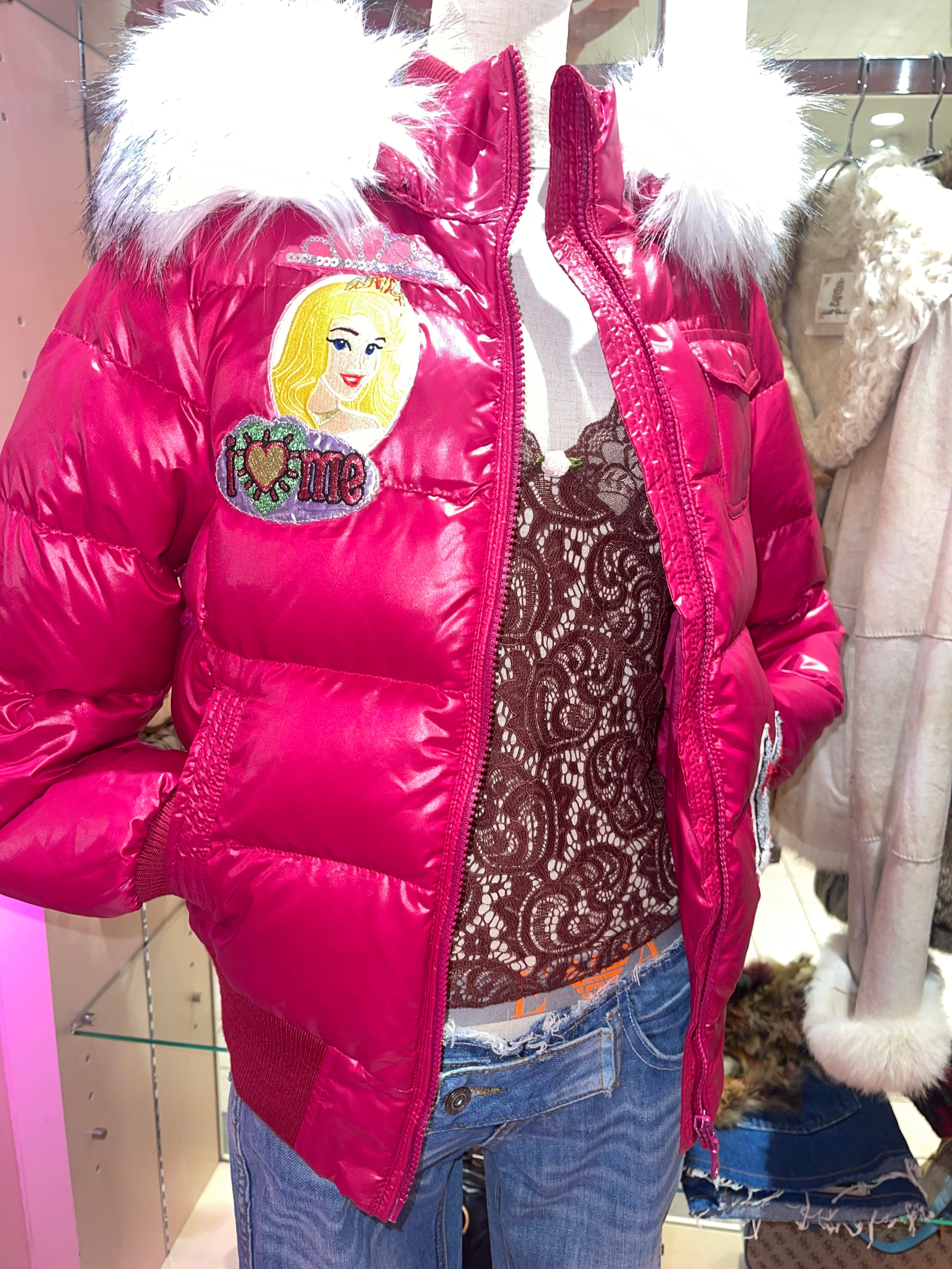 Dreamy Fur Hoodie Puffer Jacket Pink y2k