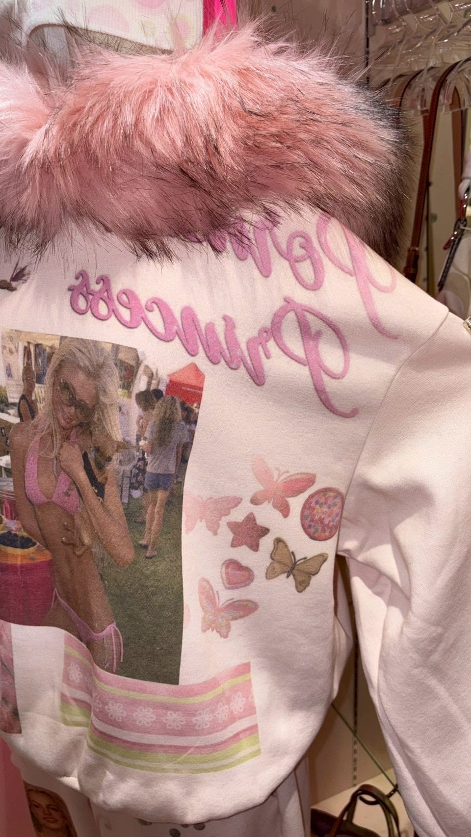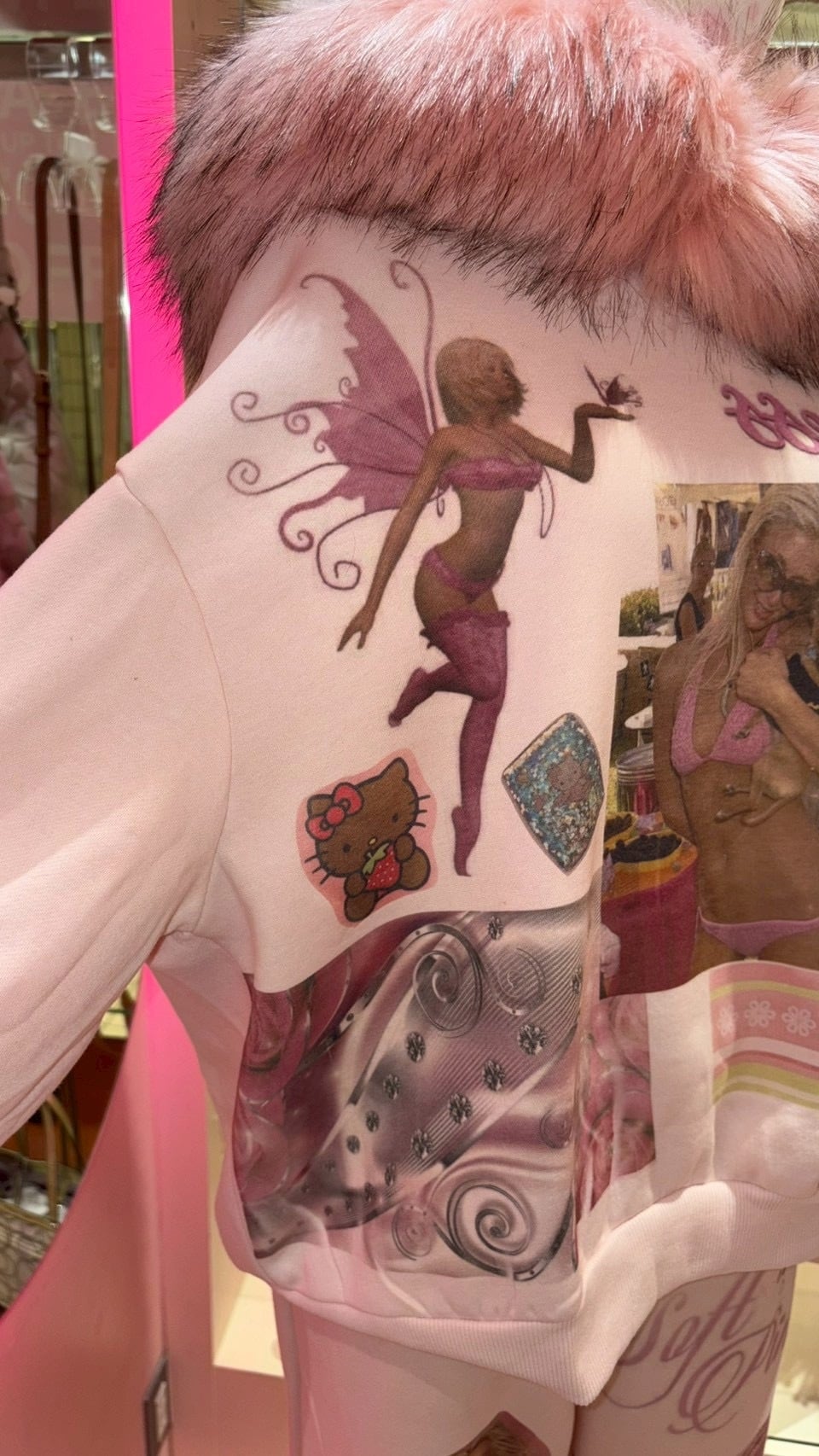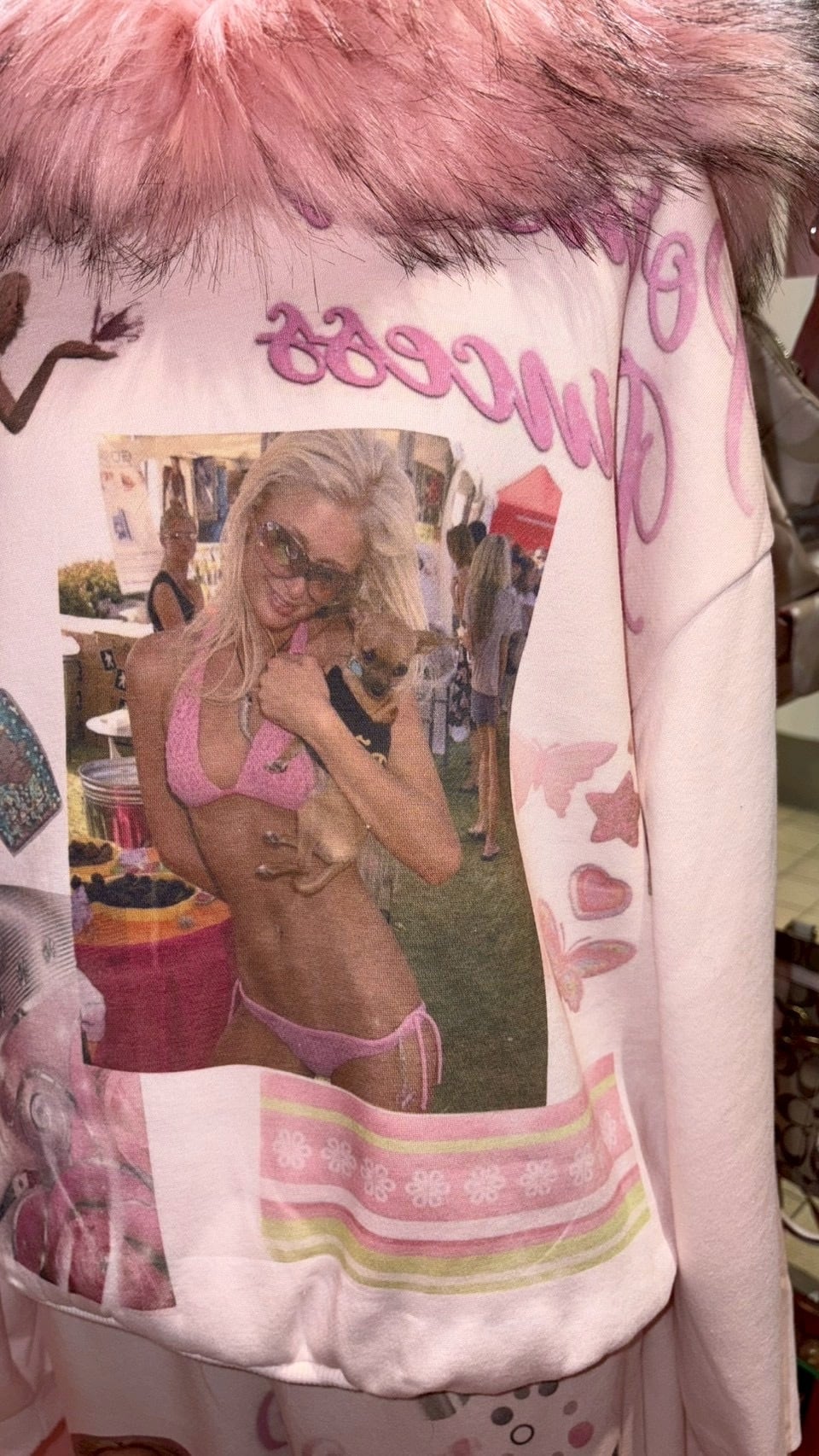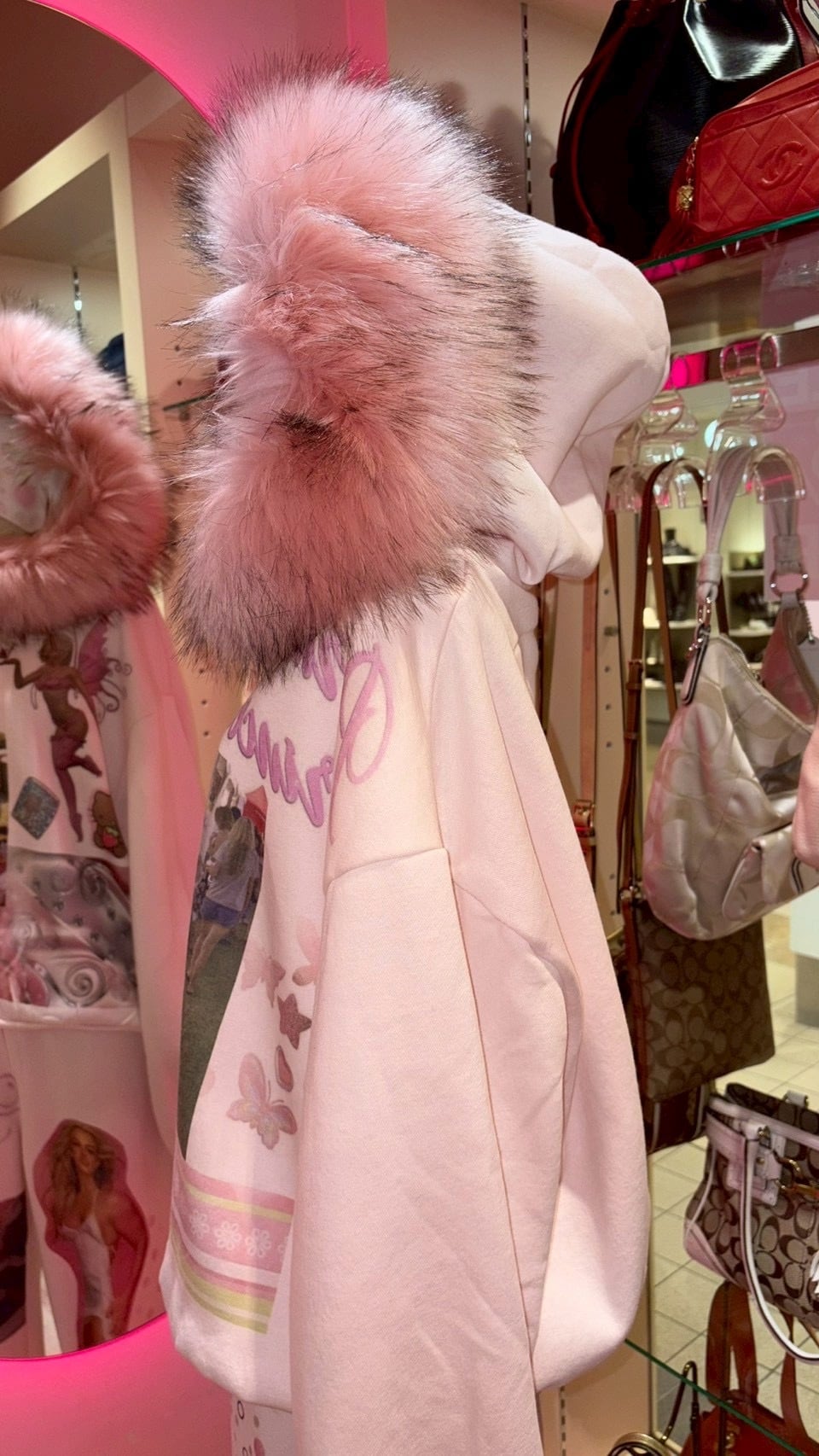 Printed Paris Fur Hoodie PINK y2k