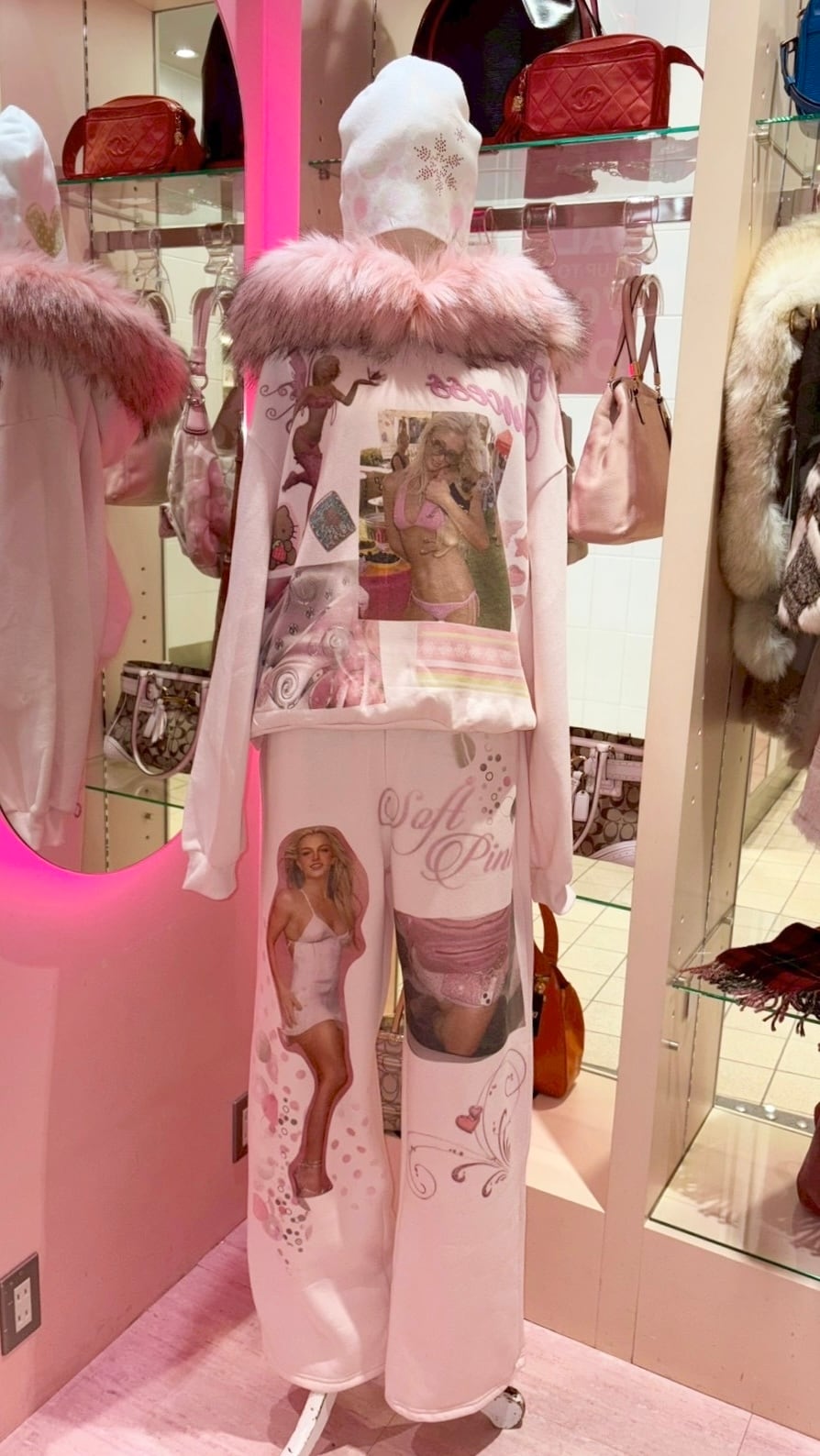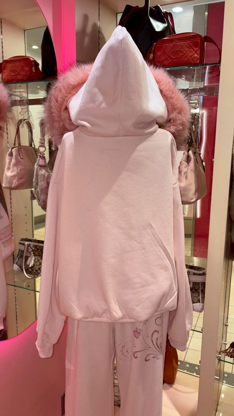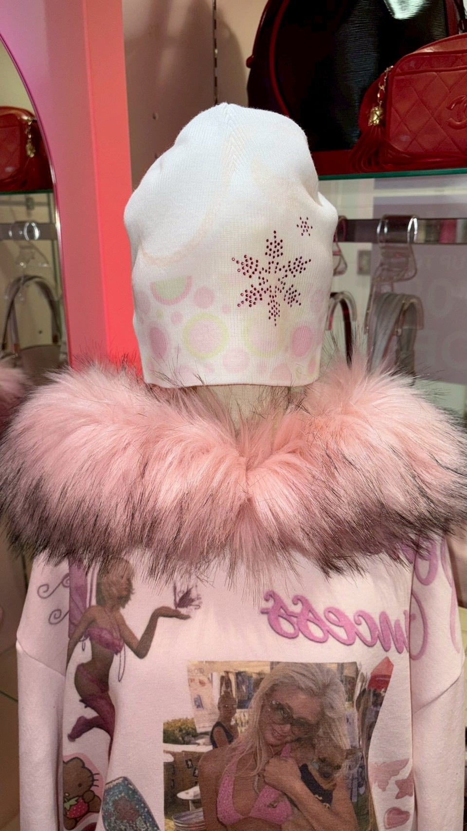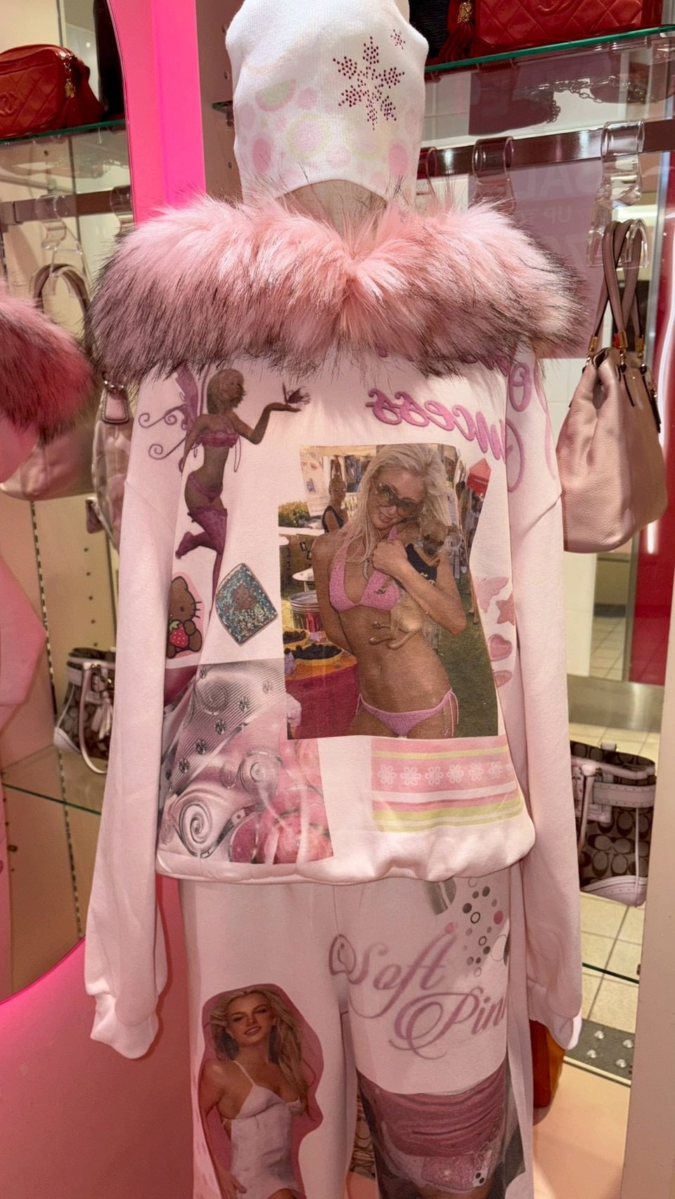 Printed Paris Fur Hoodie PINK y2k