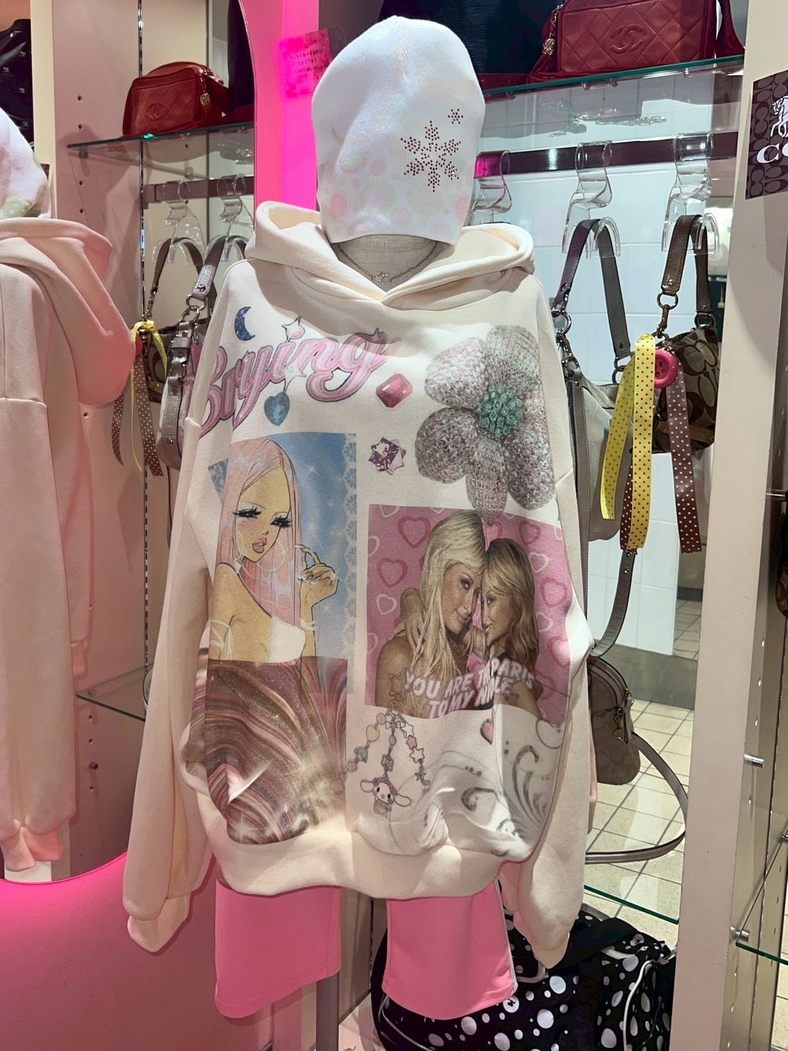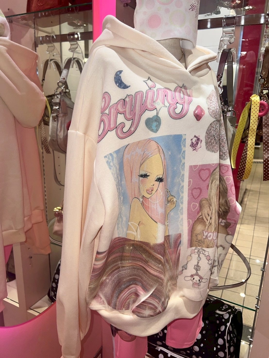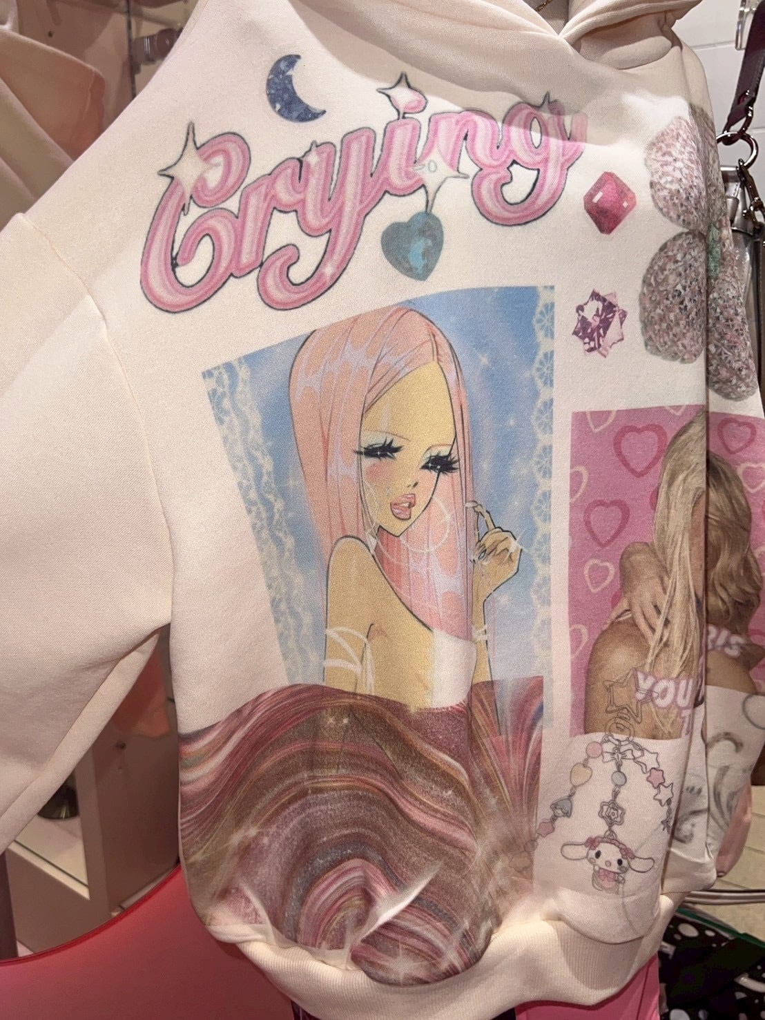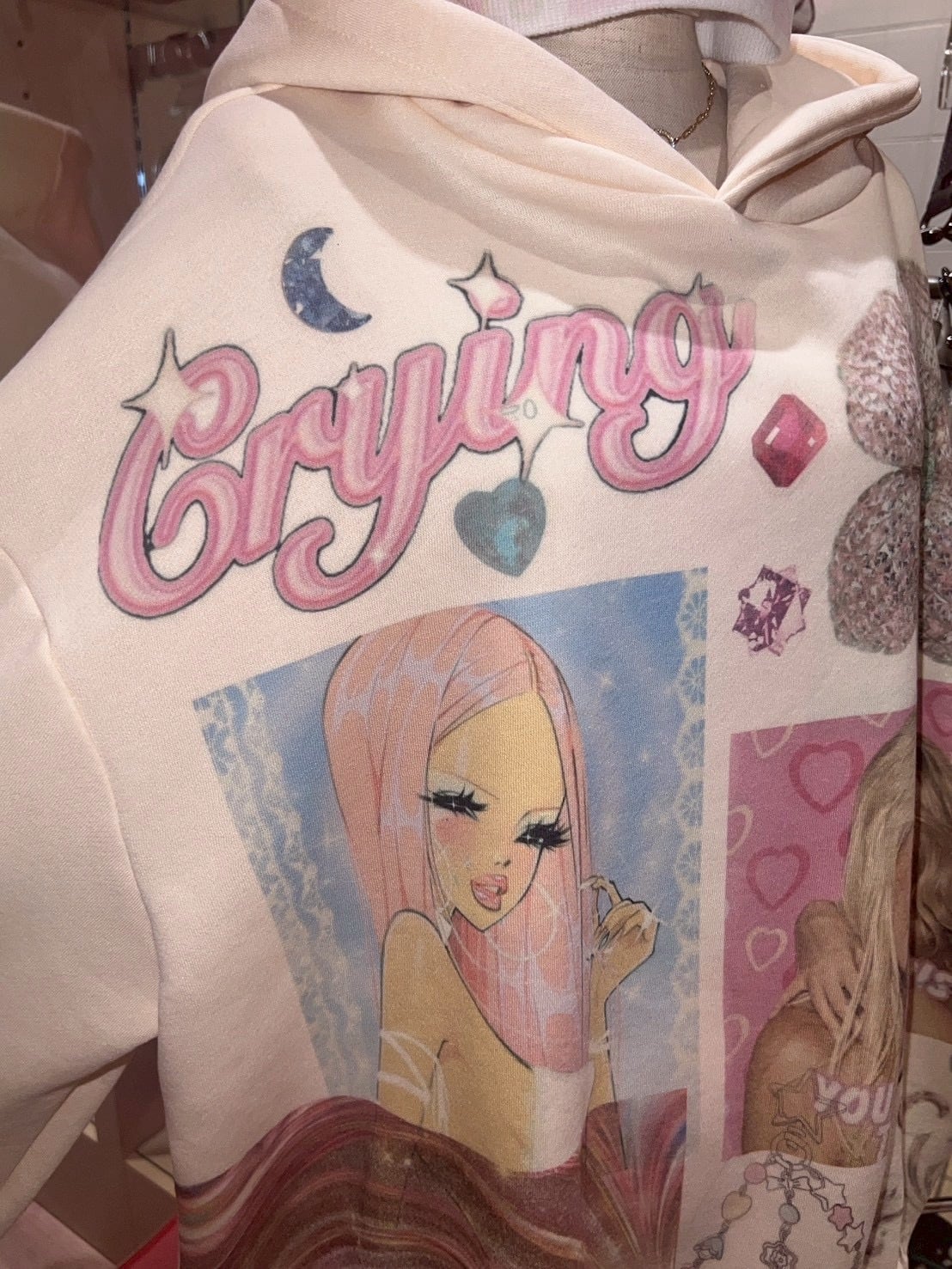 Printed Crying Hoodie yellow y2k