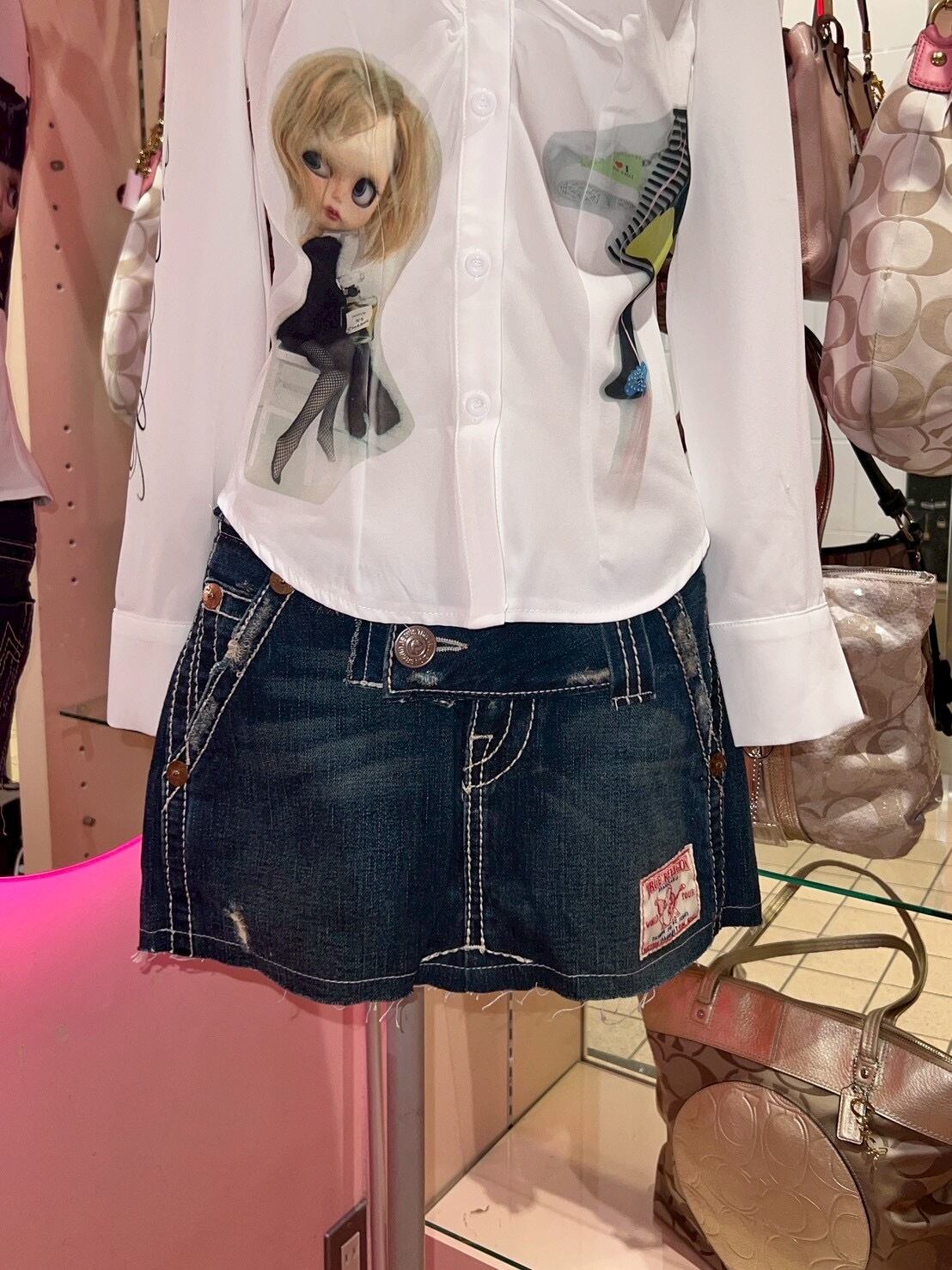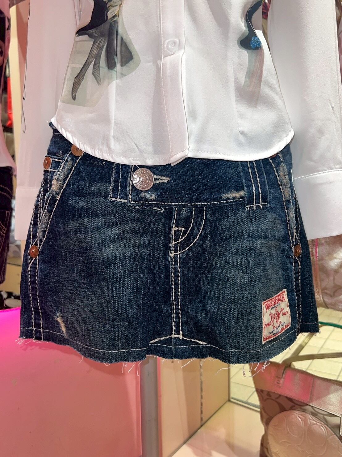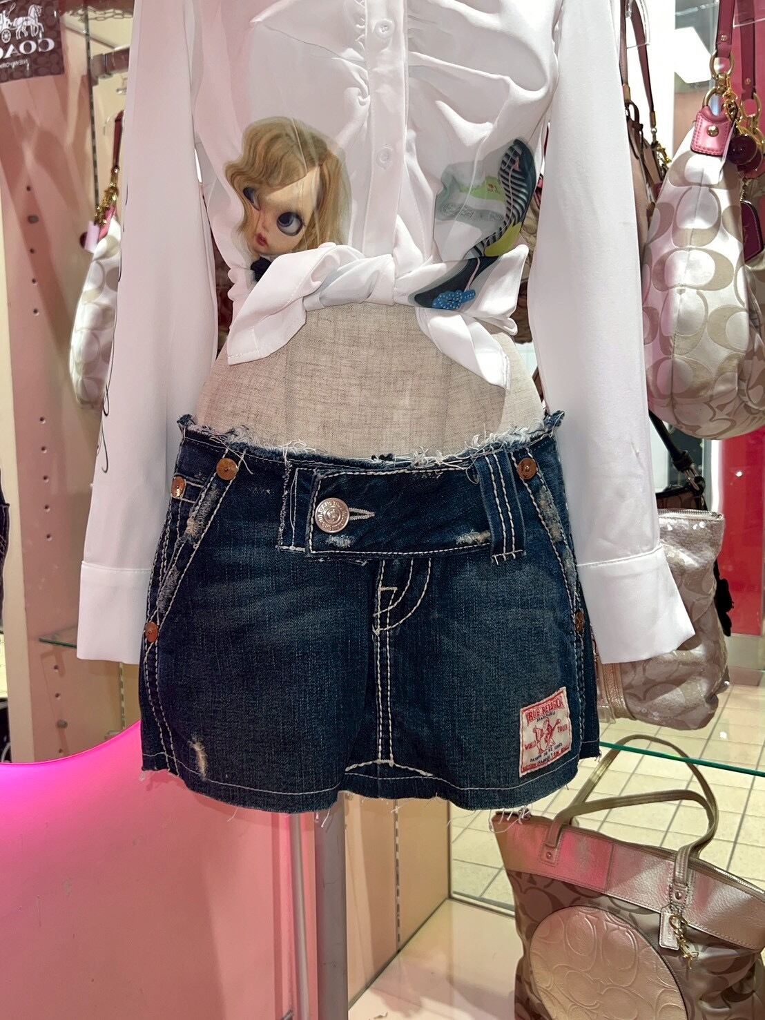 ローライズデザインのトゥルーレリジョン のデニムスカート をさらにローライズにリメイクしたスペシャルな1点物